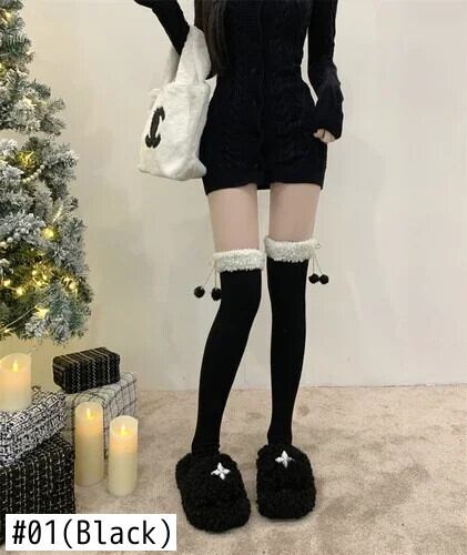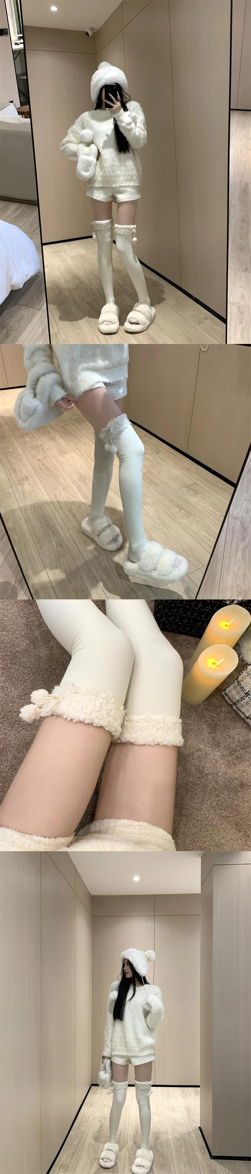 甘い子羊ぬいぐるみボール膝丈ストッキング秋ぬいぐるみニット底ブーツと高ストッキング 靴 シューズ 大人ガーリー スウィート キュート カジュアル オータム 秋物 タイツ ソックス