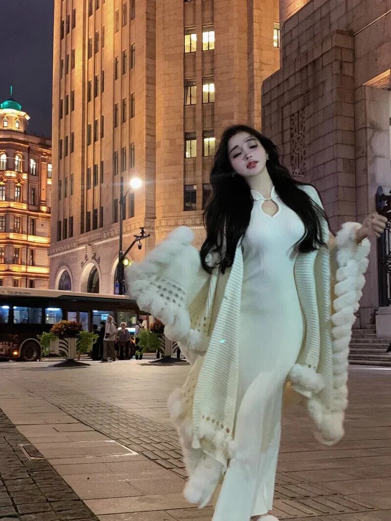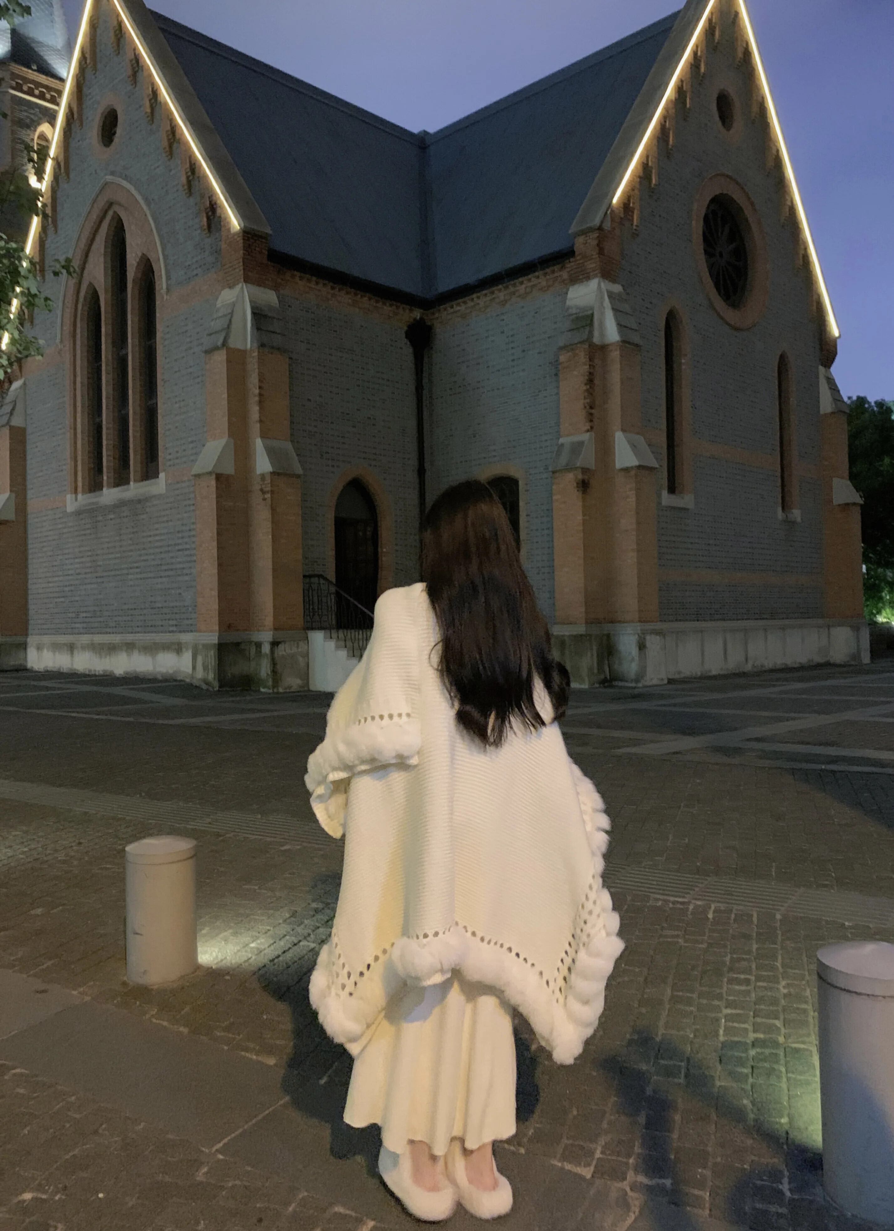 スイートガールスーツ秋と冬肥厚ニットケープスリムフィットストラップドレスツーピースセット 大人ガーリー スウィート キュート カジュアル オータム 秋物 ウィンター 冬物