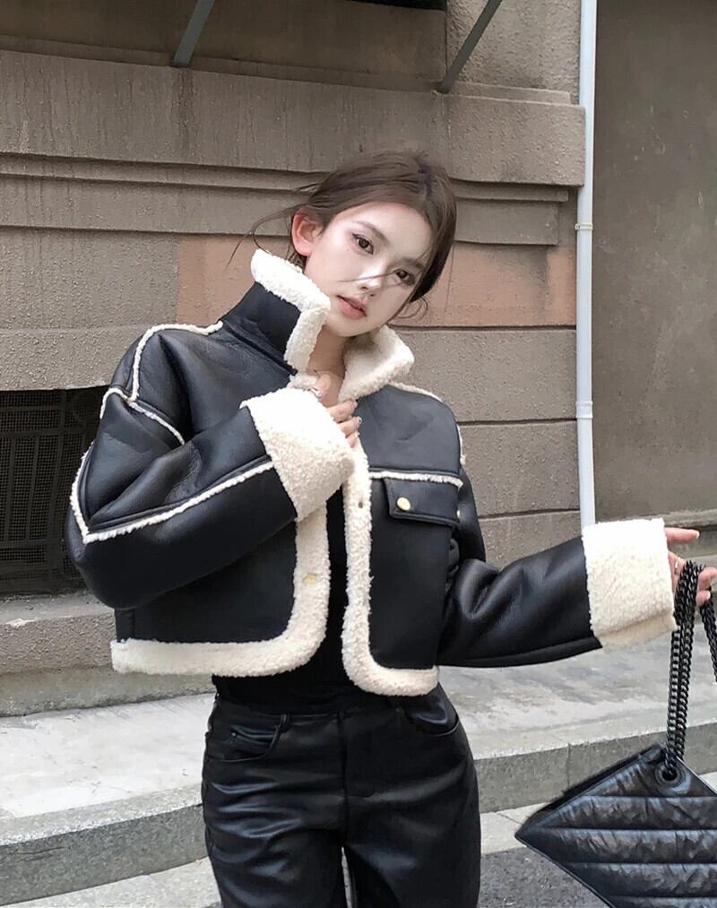 甘いホットガール両面ラムフェイクファージャケット秋と冬ショートコットンカーディガン 大人ガーリー スウィート キュート カジュアル オータム 秋物 ウィンター 冬物