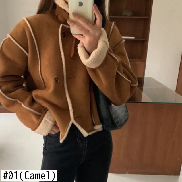 フレンチレトロスタンドカラールーズファージャケット秋と冬両面長袖ショートジャケット ロング オータム 秋物 ウィンター 冬物