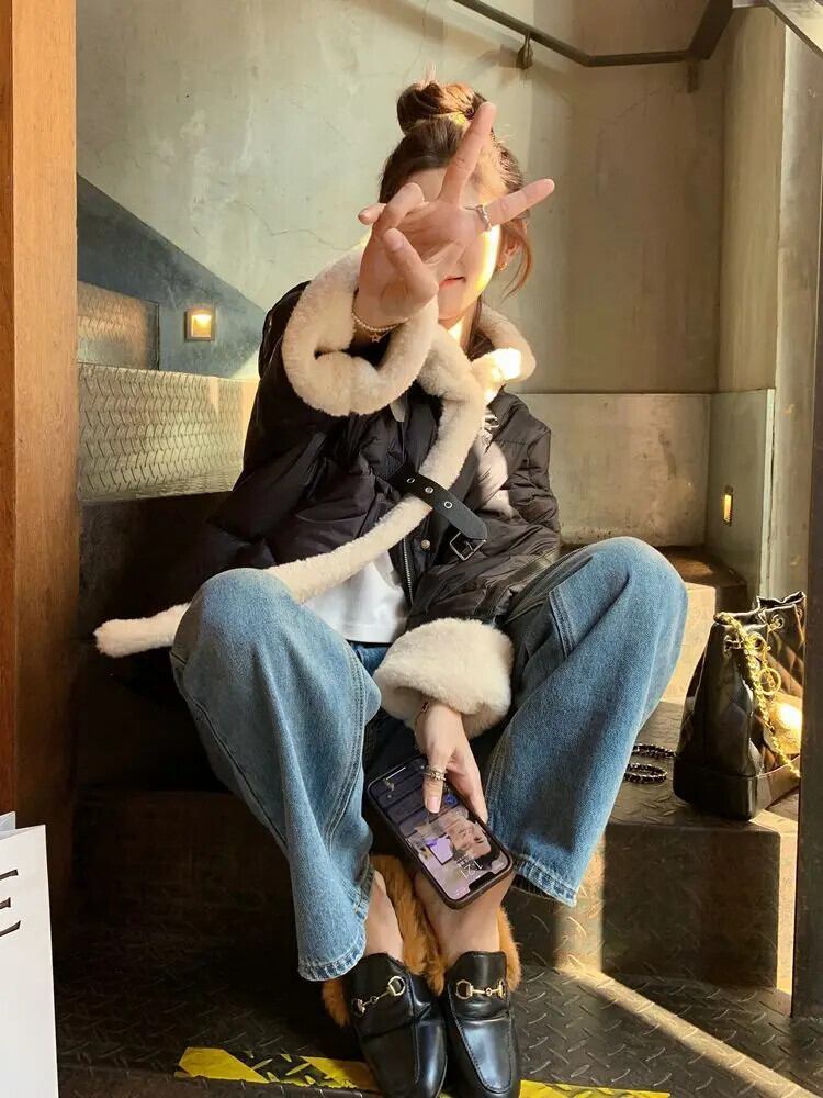スタイルパッチワークショートダウンコットンジャケット冬厚いスタンドカラールーズフィットコットンジャケット ウィンター 冬物