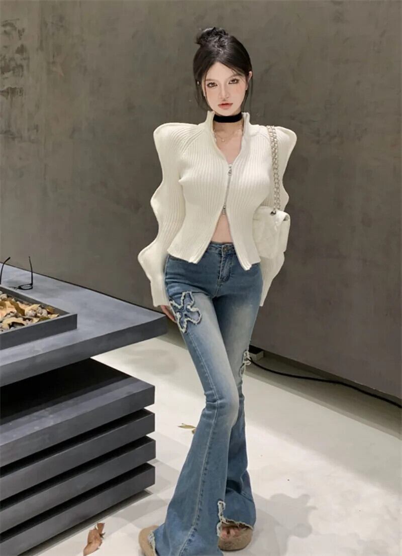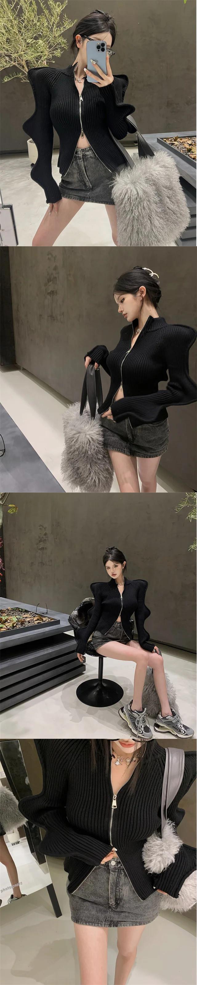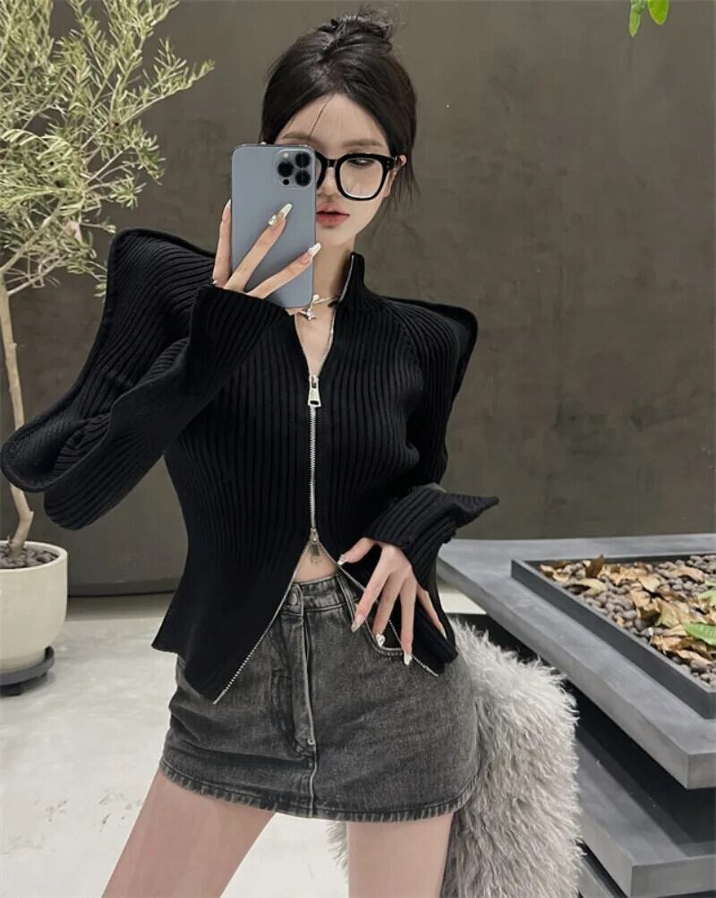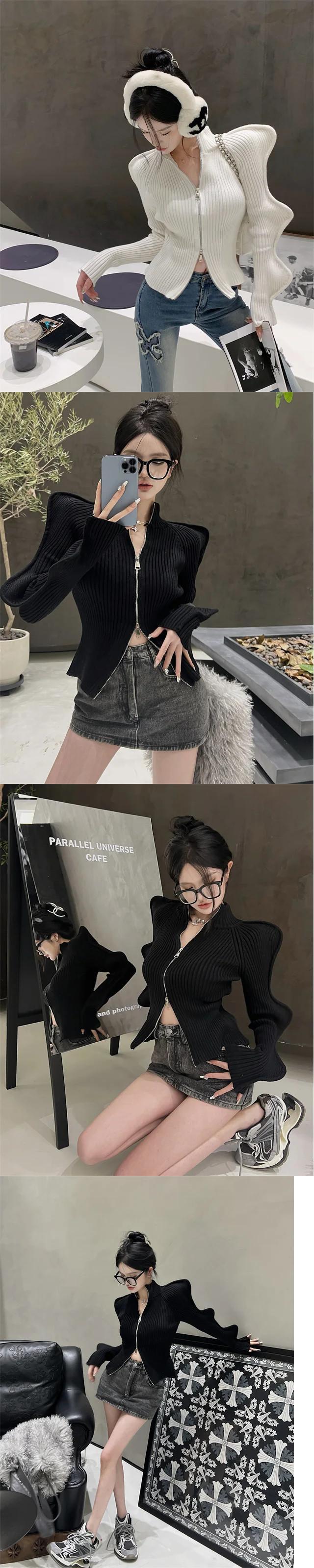 甘いホットガールセーターコート秋と冬リップルスリムフィットスタンドカラーニットカーディガントップ 大人ガーリー スウィート キュート カジュアル オータム 秋物 ウィンター 冬物