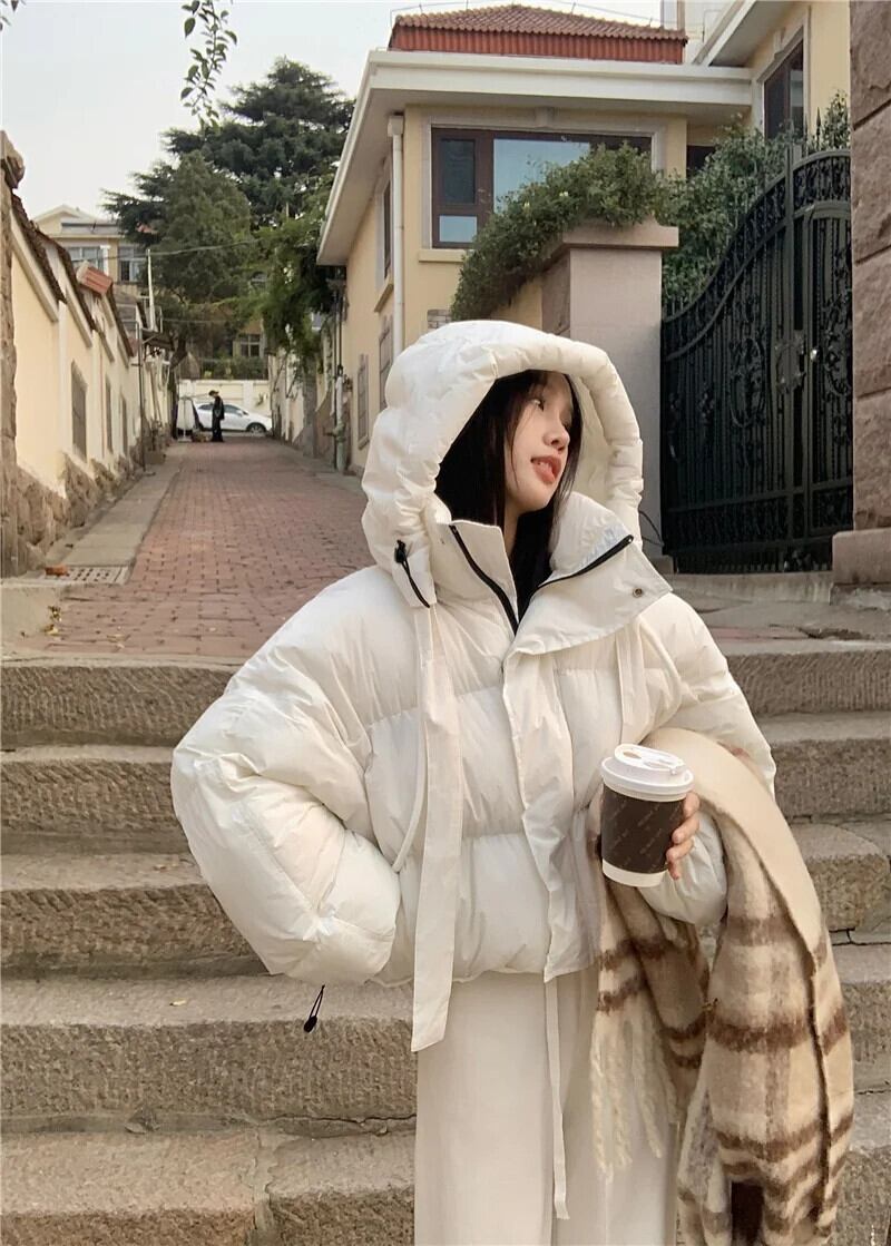 Sweet Girl 暖かく厚いフード付きコットンコート秋/冬ルーズ長袖ジッパーコットンコート ロング 大人ガーリー スウィート キュート カジュアル オータム 秋物 ウィンター 冬物