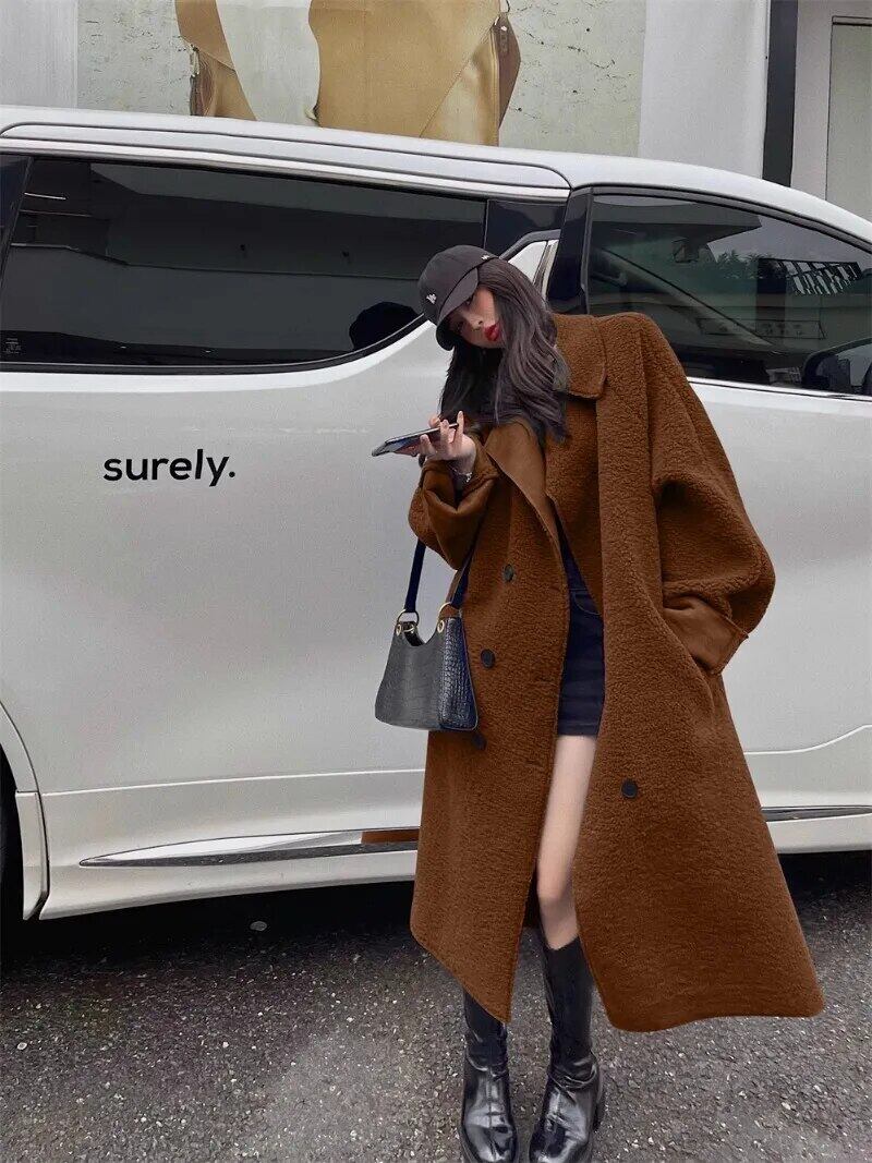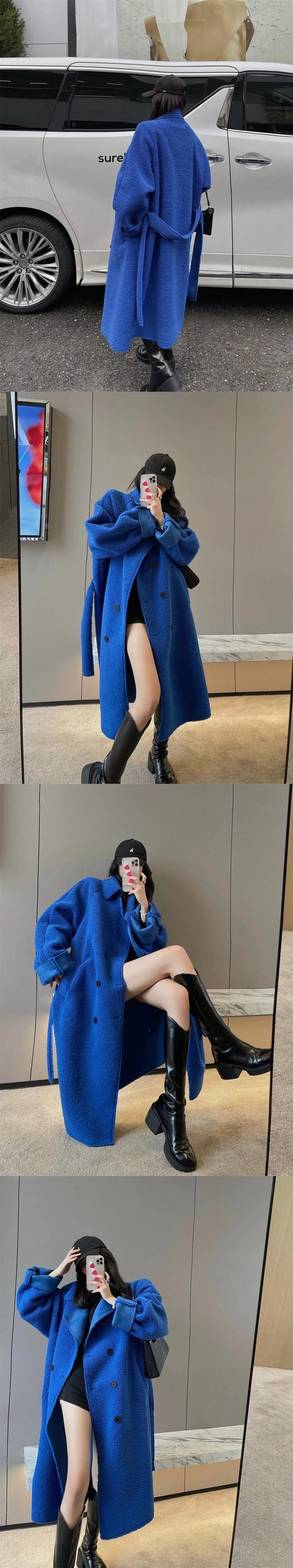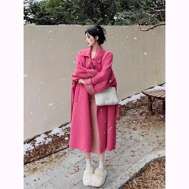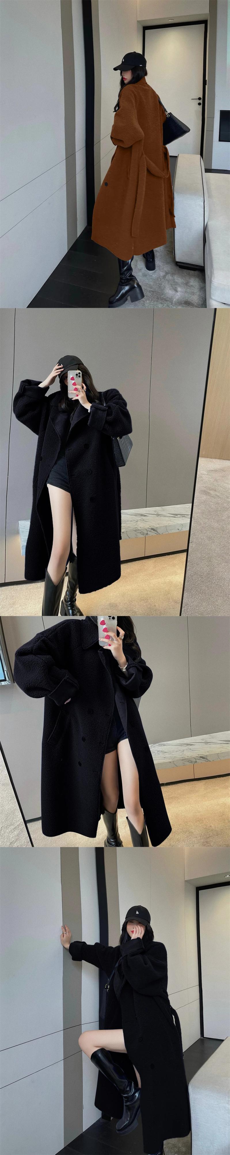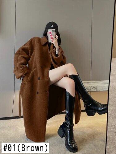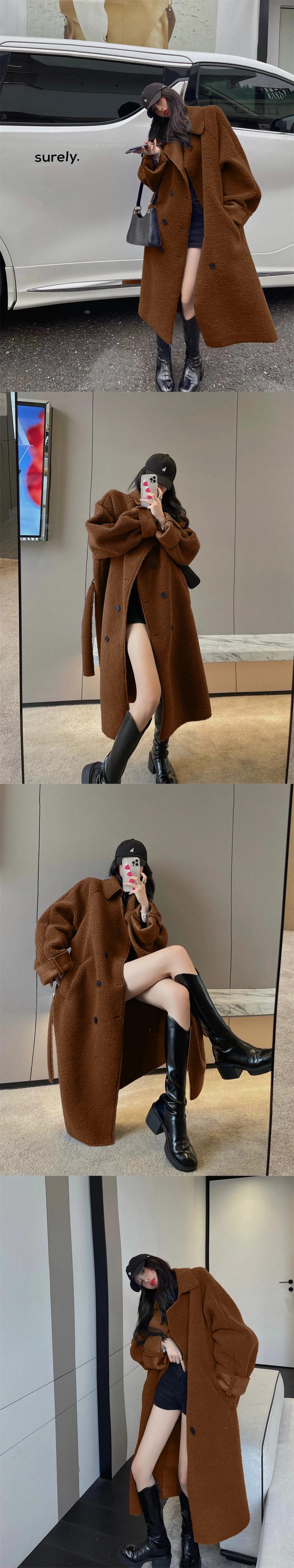 スタイルオフィスレディ通勤ルーズラムウールコート冬レースアップロング肥厚トレンチコート ウィンター 冬物 会社 学校 通勤や通学にも