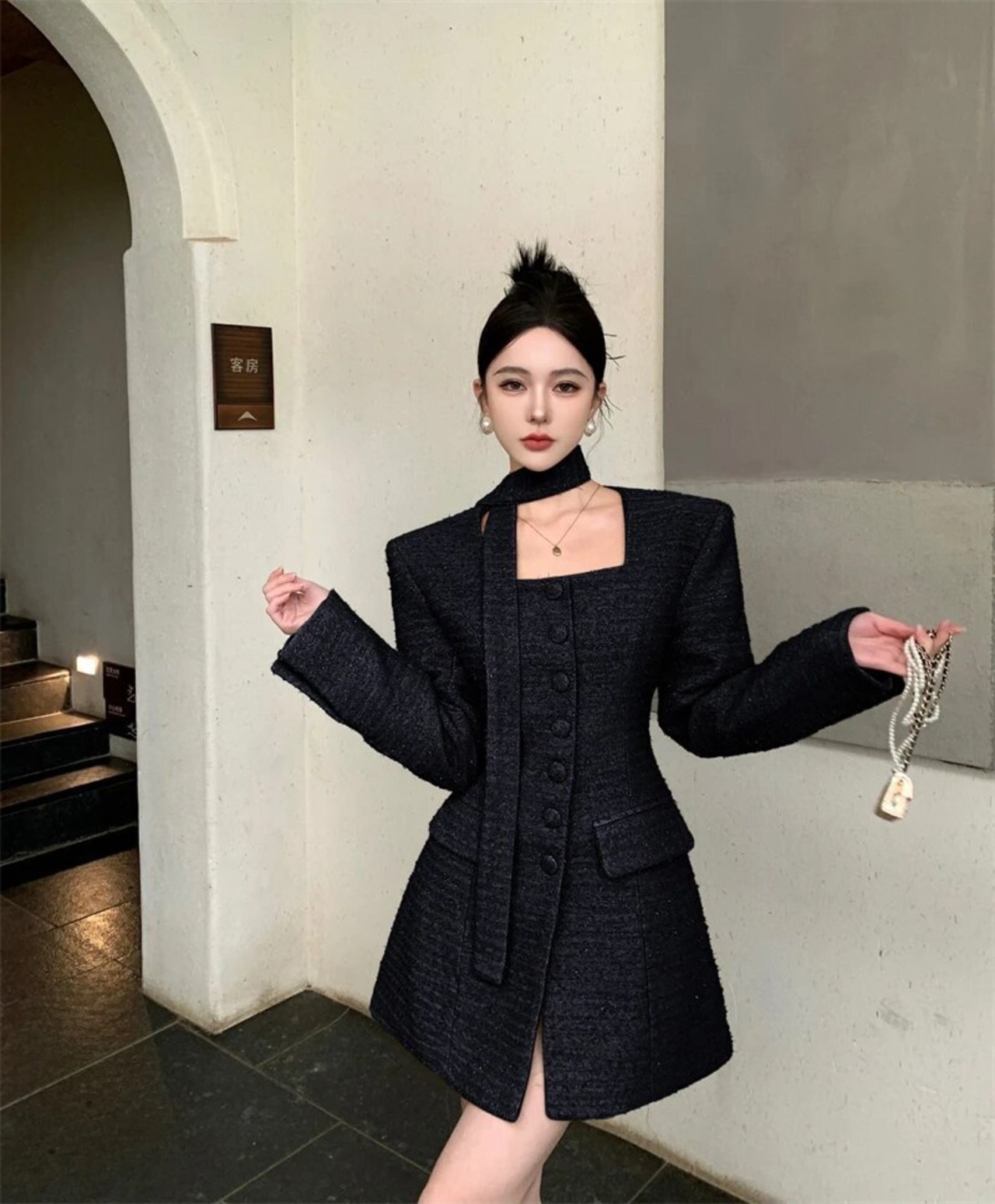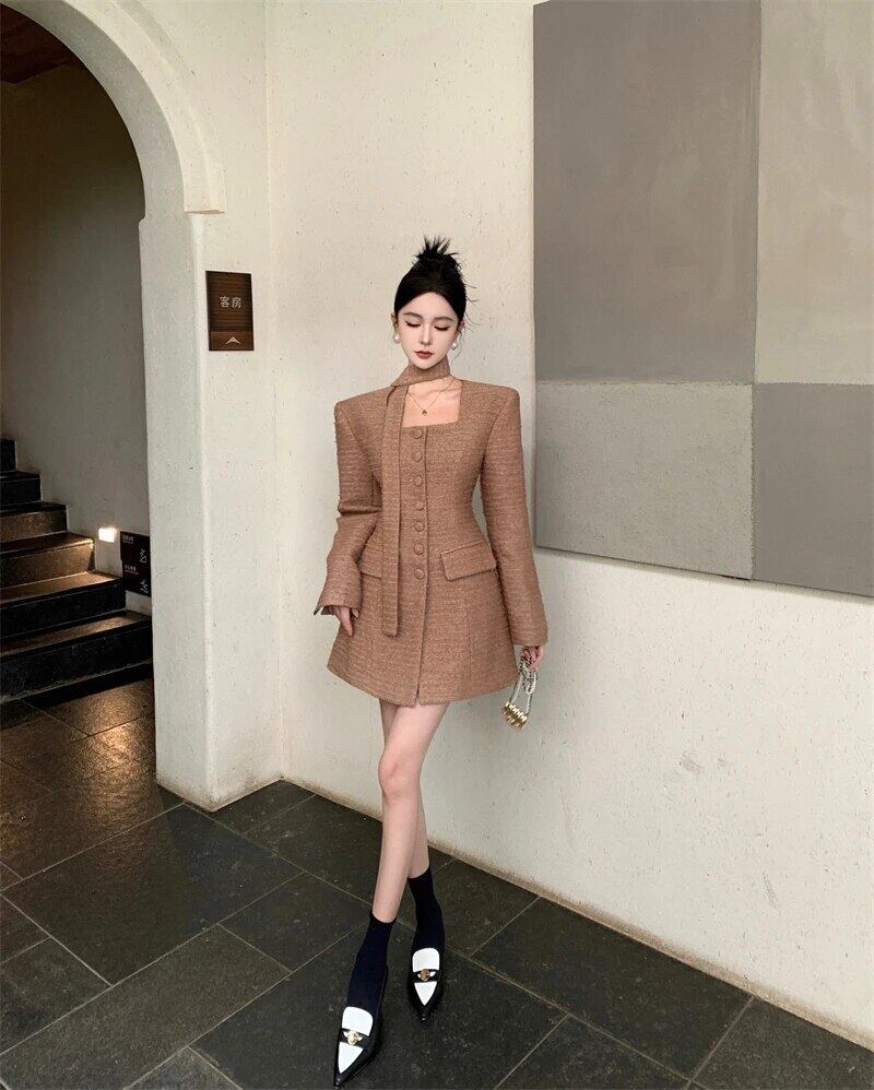 スタイルスウィートガールスクエアカラードレス秋/冬スリムレースアップコットンクリップショートドレス 大人ガーリー キュート カジュアル オータム 秋物 ウィンター 冬物 スクウェア