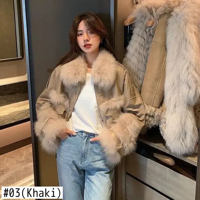 甘いホットガールフェイクファーショートジャケット秋と冬パッチワーク長袖フェイクレザージャケット ロング 大人ガーリー スウィート キュート カジュアル オータム 秋物 ウィンター 冬物