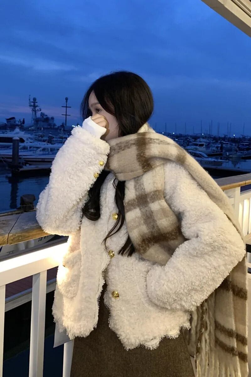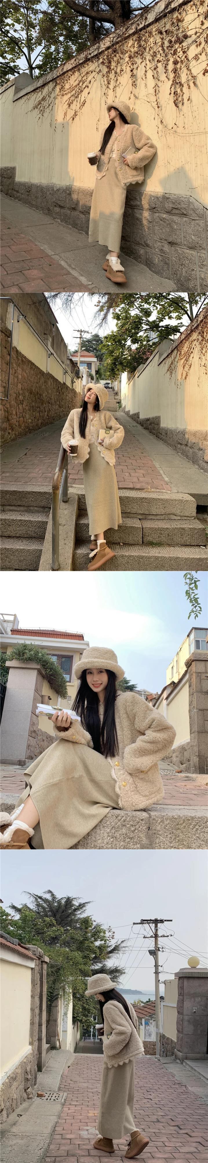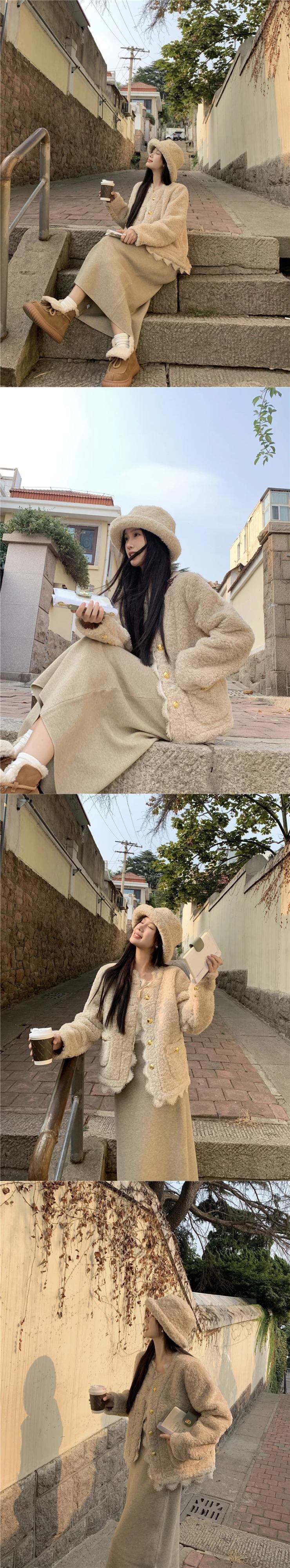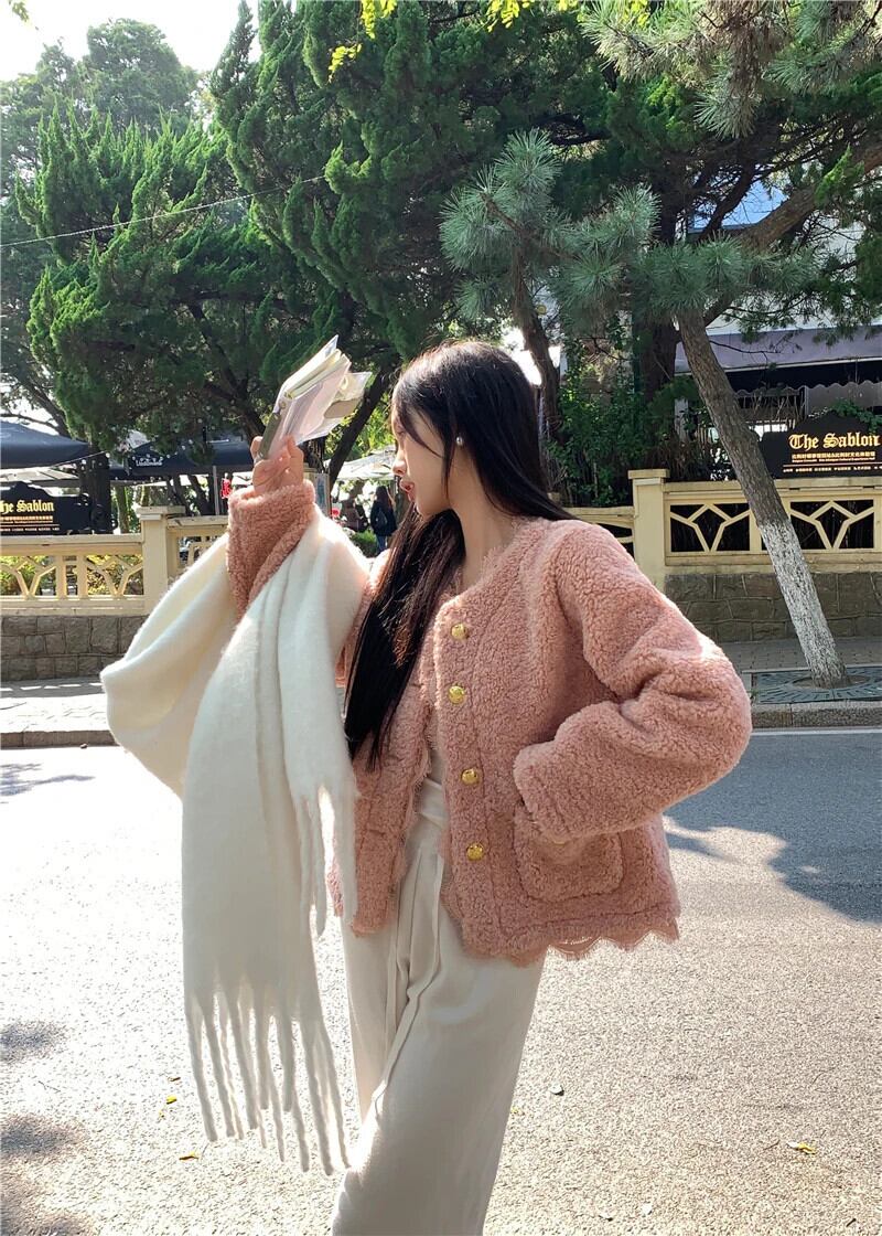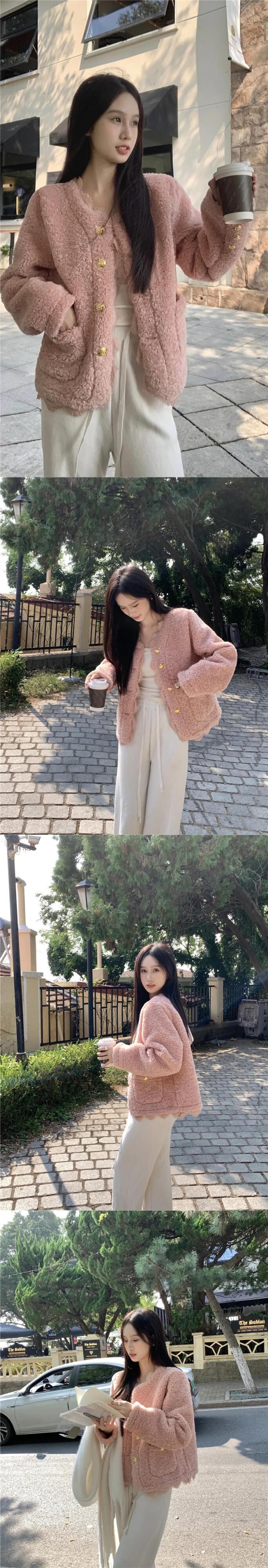 ホットガールレースエッジ模造ラムウールコート秋/冬両面毛皮緩い暖かいジャケット オータム 秋物 ウィンター 冬物