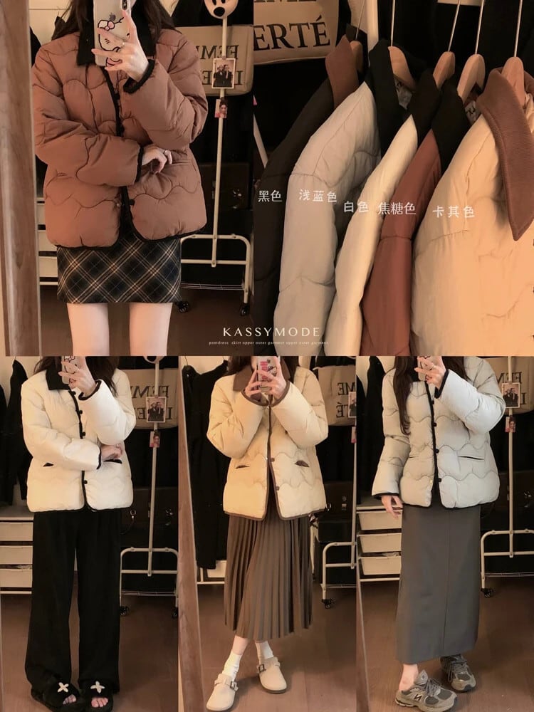スタイルルーズで厚みあるパンコットンジャケット秋と冬ターンダウンカラー長袖コットンジャケット ロング オータム 秋物 ウィンター 冬物