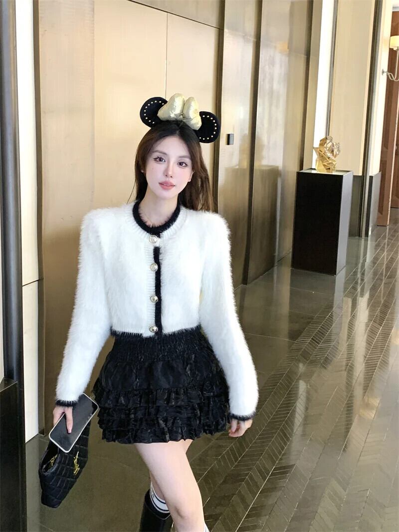 スイートガールスーツ レディース 秋 Oネック 長袖 ショートコート ウエスト Aライン ミニスカート 2点セット ロング 大人ガーリー スウィート キュート カジュアル オータム 秋物