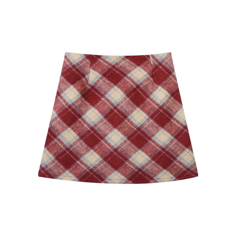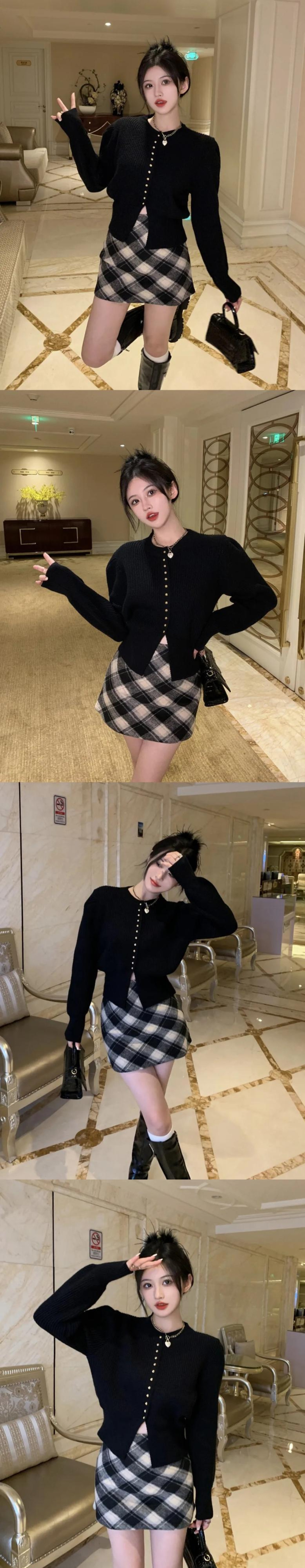 Sweet Girl レトロスーツ秋 O ネックニットカーディガンウエストミニチェック柄スカート 2 点セット 大人ガーリー スウィート キュート カジュアル オータム 秋物 Oネック