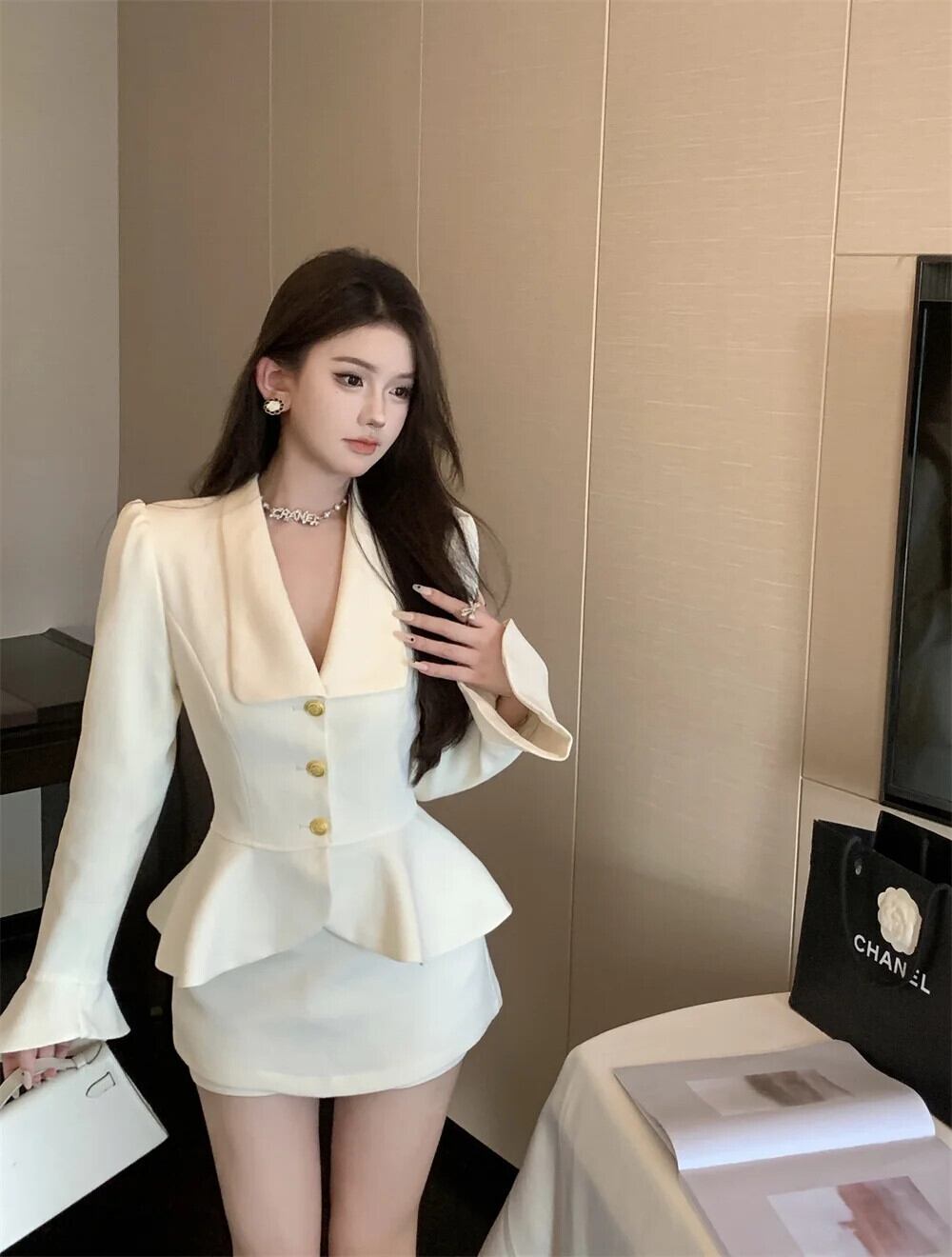 スイートガールスーツ レディース 秋 ターンダウンカラー シングルブレスト トップ ウエスト ミニスカート ツーピースセット 大人ガーリー スウィート キュート カジュアル オータム 秋物