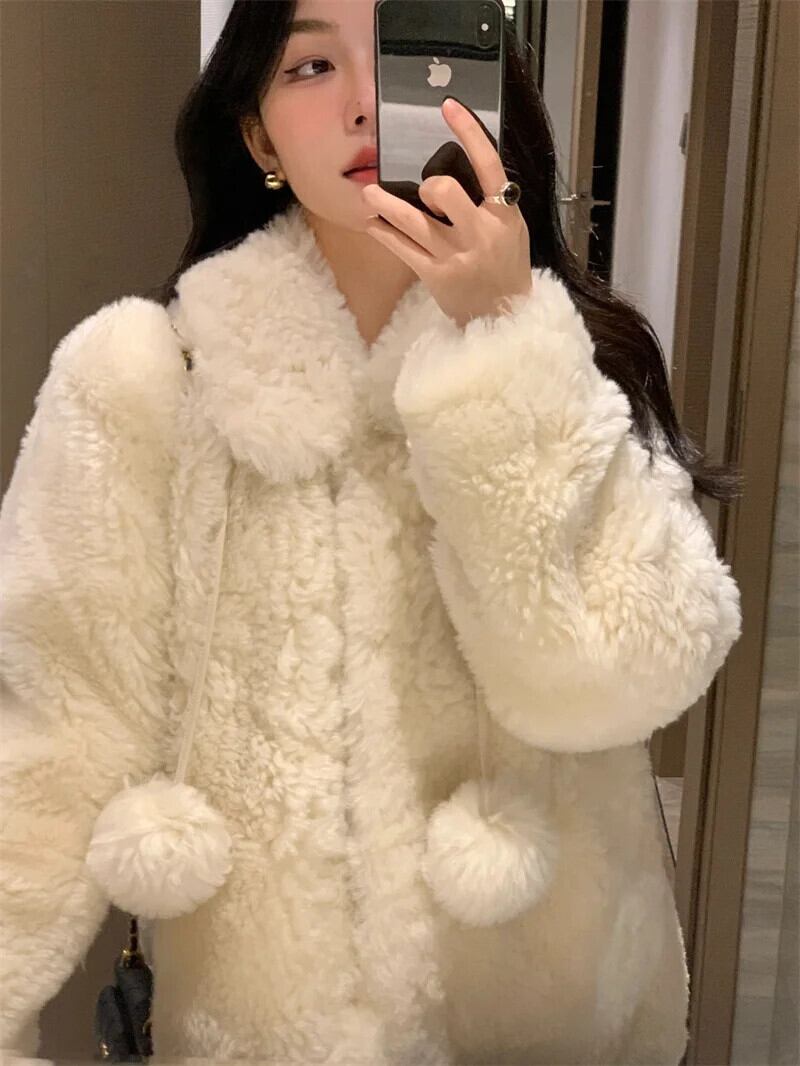 Sweet Girl ぬいぐるみ長袖ジャケット秋と冬暖かさルーズフィットターンダウン襟厚いコートトップ ロング 大人ガーリー スウィート キュート カジュアル オータム 秋物 ウィンター 冬物