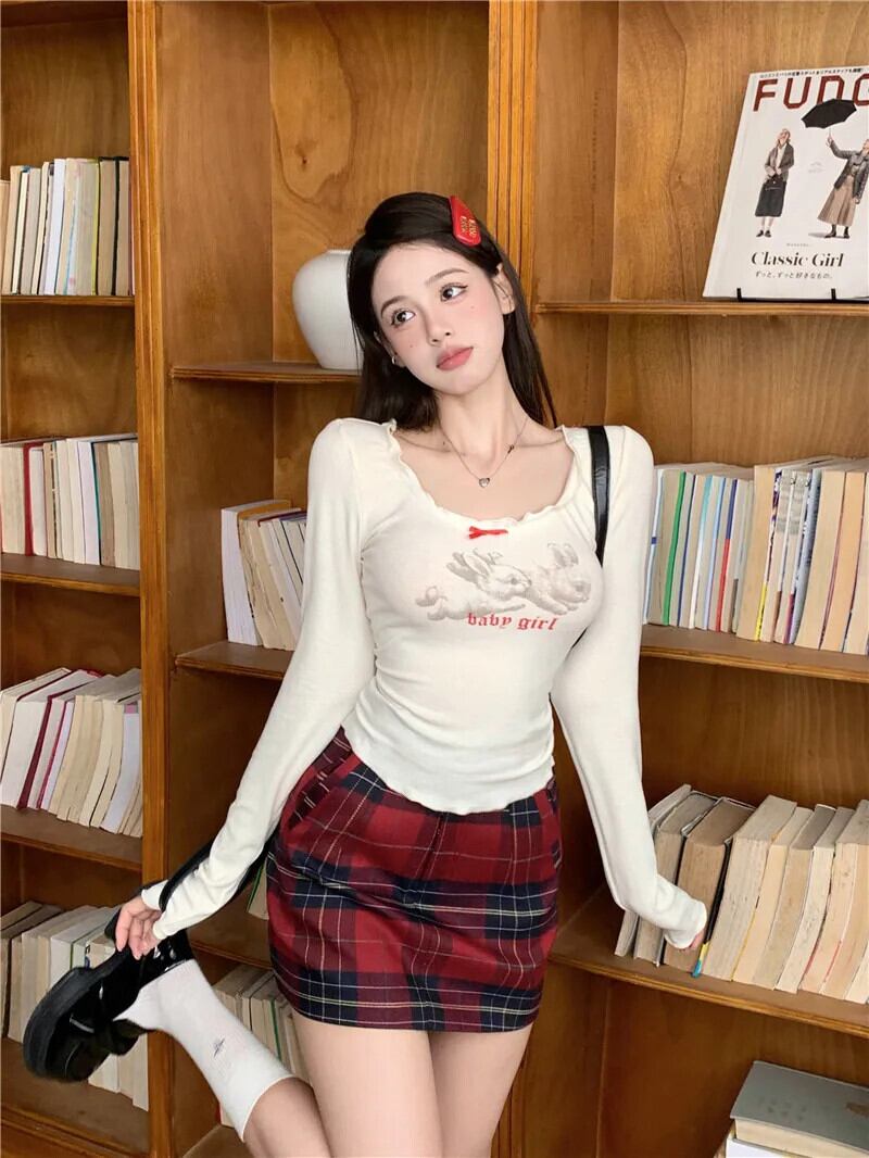 純粋セクシーホットガールスクエアカラーリボンニットシャツ秋プリント波エッジ長袖セーター ロング オータム 秋物 スクウェア