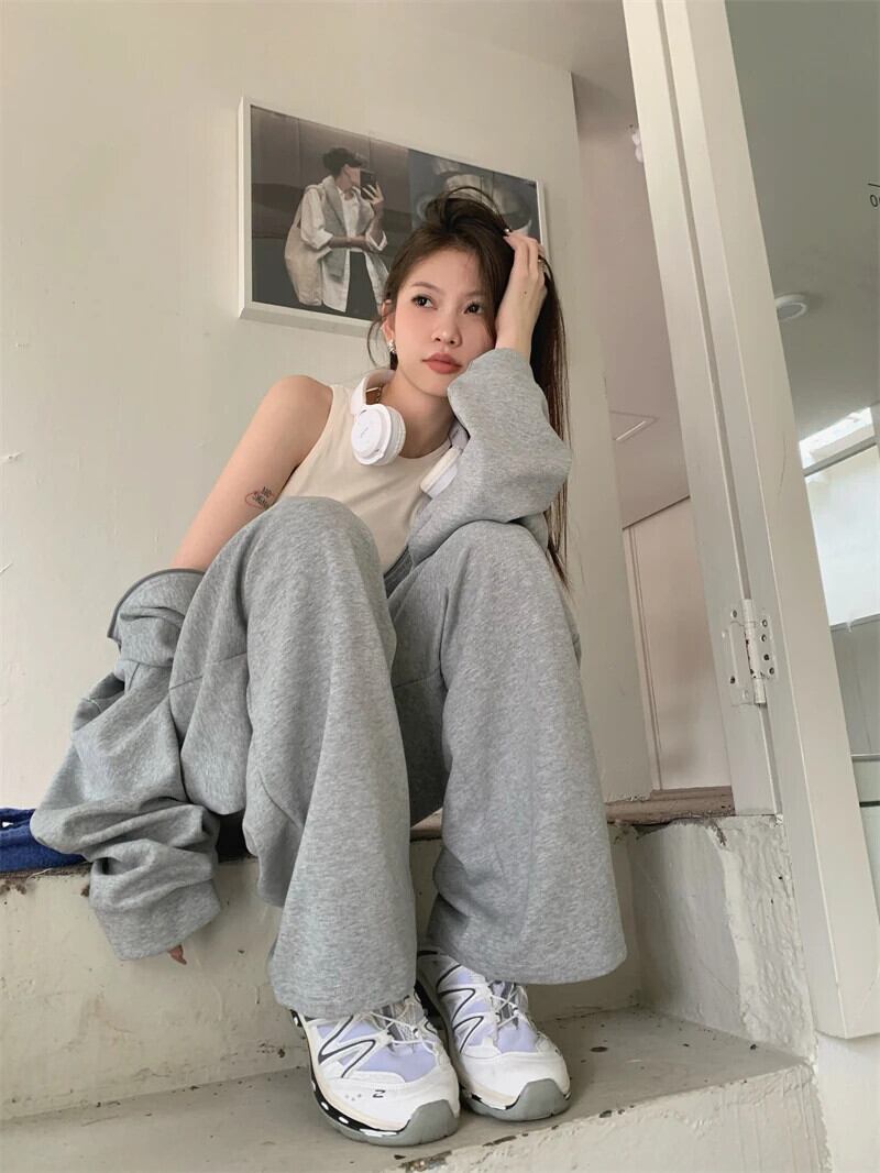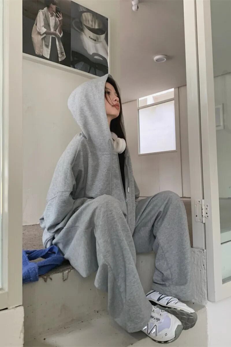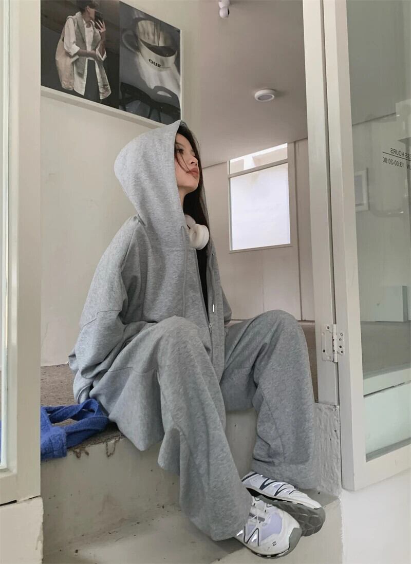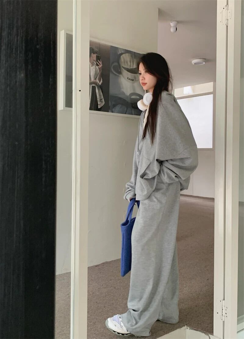 スイートホットガールグレースーツ秋フード付きスウェットシャツコートウエストロングパンツツーピースセット 大人ガーリー スウィート キュート カジュアル オータム 秋物