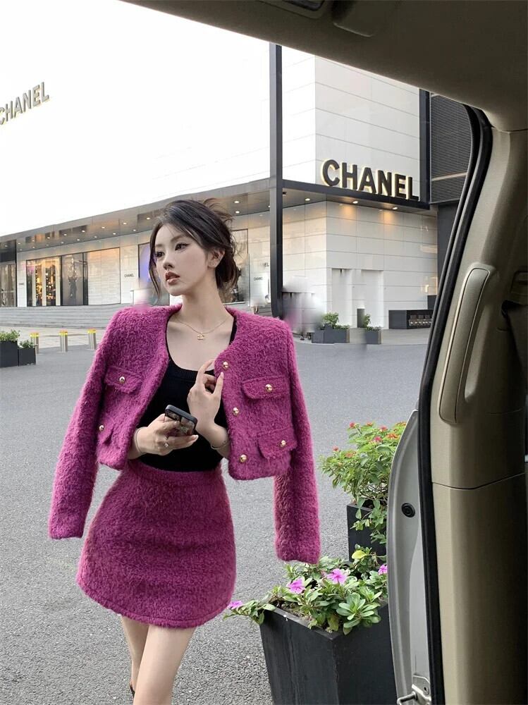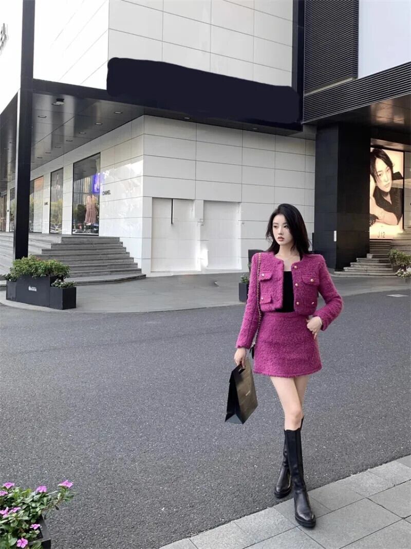 フレンチスイートホットガールスーツ秋ウールショートコットンジャケットウエストミニスカートツーピースセット 大人ガーリー スウィート キュート カジュアル オータム 秋物