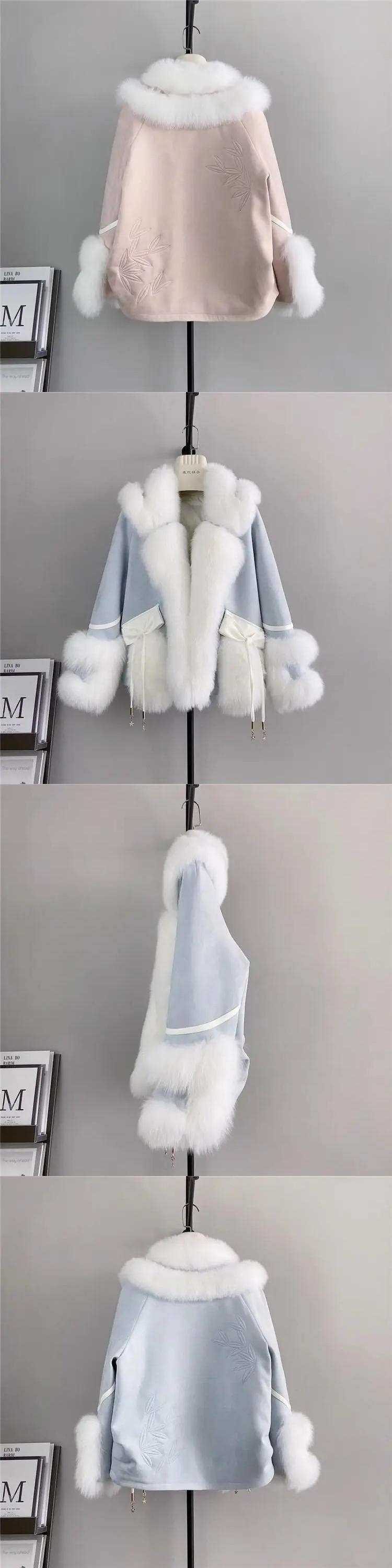甘いホットガールフォックスファーダウンジャケット冬毛皮襟長袖ルーズフィットコットンジャケット ロング 大人ガーリー スウィート キュート カジュアル ウィンター 冬物