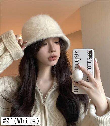 甘いホットガール ese スタイルかわいいバケットハット秋と冬白ソフト暖かいぬいぐるみ帽子 ホワイト 大人ガーリー スウィート キュート カジュアル オータム 秋物 ウィンター 冬物