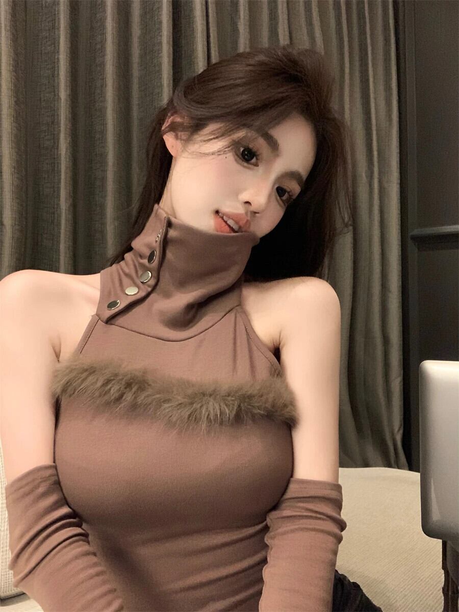 アメリカンスウィートホットガールセクシー多用途スリーブ Tシャツ秋不規則裾スリムフィットトップ 大人ガーリー キュート カジュアル オータム 秋物