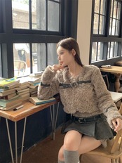 ホットガールレトロスーツ秋と冬ラムファーショートジャケットパッチワークプリーツショートスカートツーピースセット オータム 秋物 ウィンター 冬物