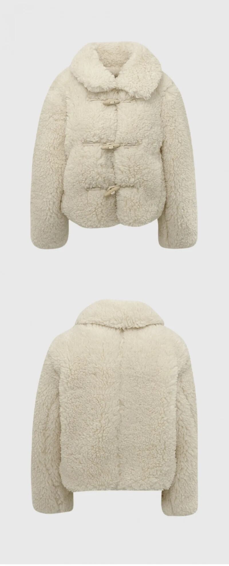 スウィートガールシック長袖ショートジャケット秋と冬ラムウールホーンボタンジャケット ロング 大人ガーリー キュート カジュアル オータム 秋物 ウィンター 冬物