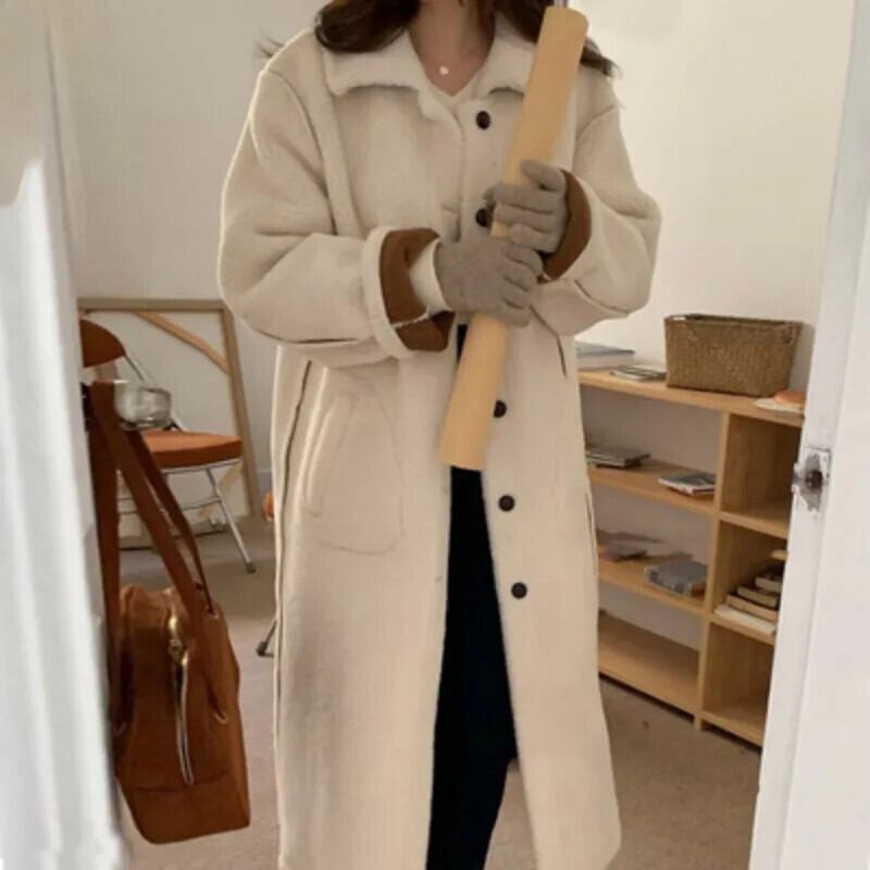 French Sweet Girl ターンダウンカラーパネル ルーズコート レディース 秋冬 前後ダブル着用 ロングコート 大人ガーリー スウィート キュート カジュアル オータム 秋物 ウィンター 冬物