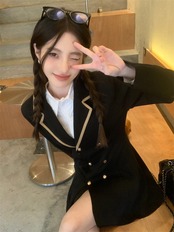 甘いホットガールスーツドレス秋/冬長袖ターンダウン襟スリムフィットドレス ロング 大人ガーリー スウィート キュート カジュアル オータム 秋物 ウィンター 冬物