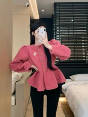 スタイル甘いホットガールフリルラムウールコート秋/冬ラウンドネックバブルスリーブジャケット 大人ガーリー スウィート キュート カジュアル オータム 秋物 ウィンター 冬物 Oネック