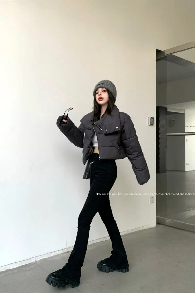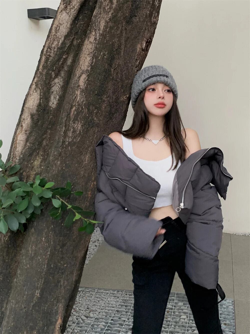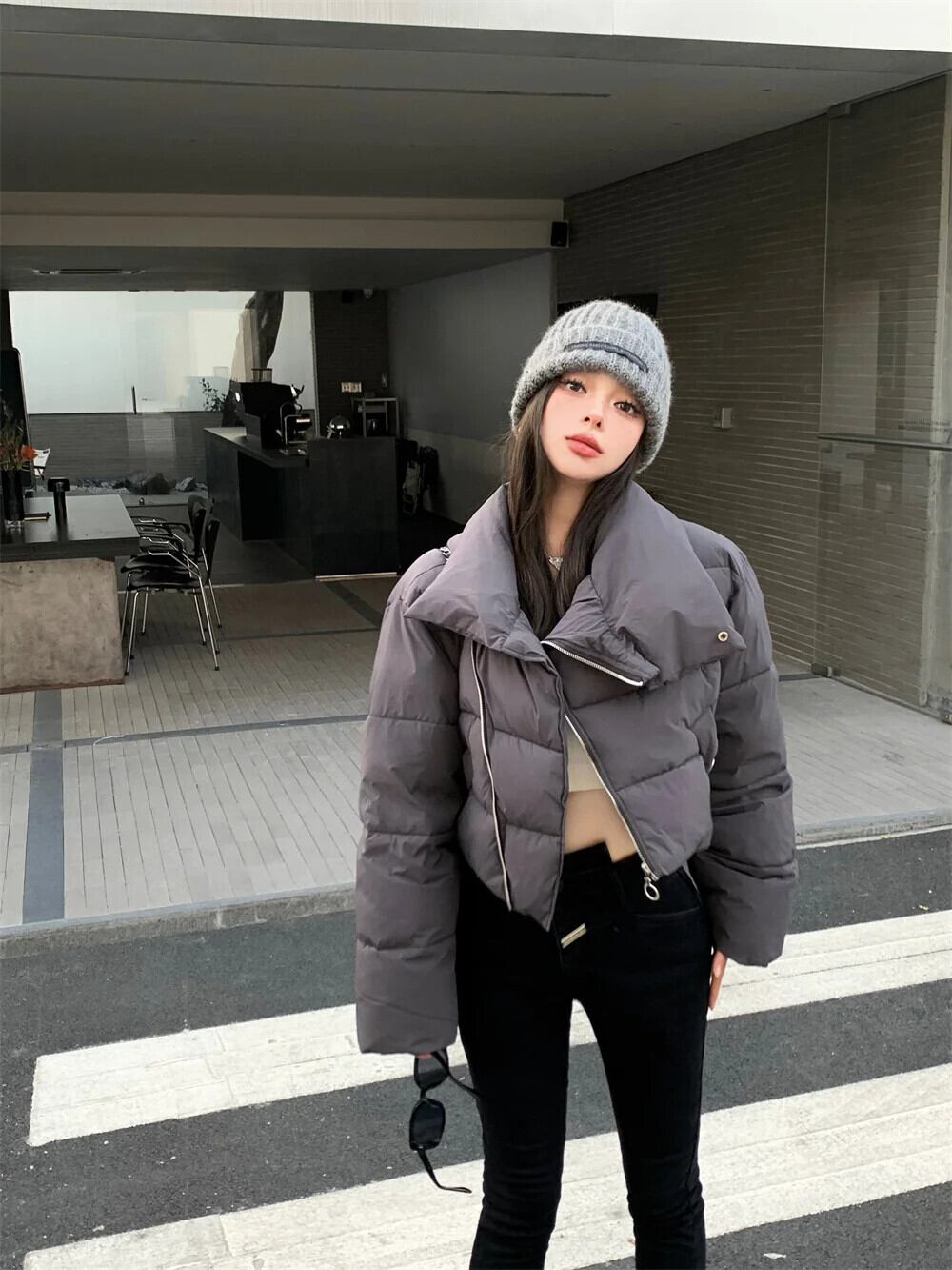 Sweet Girl グレージッパーターンダウンコットンコート冬ぬいぐるみと肥厚ショートコットンジャケット 大人ガーリー スウィート キュート カジュアル ウィンター 冬物