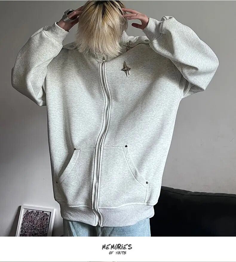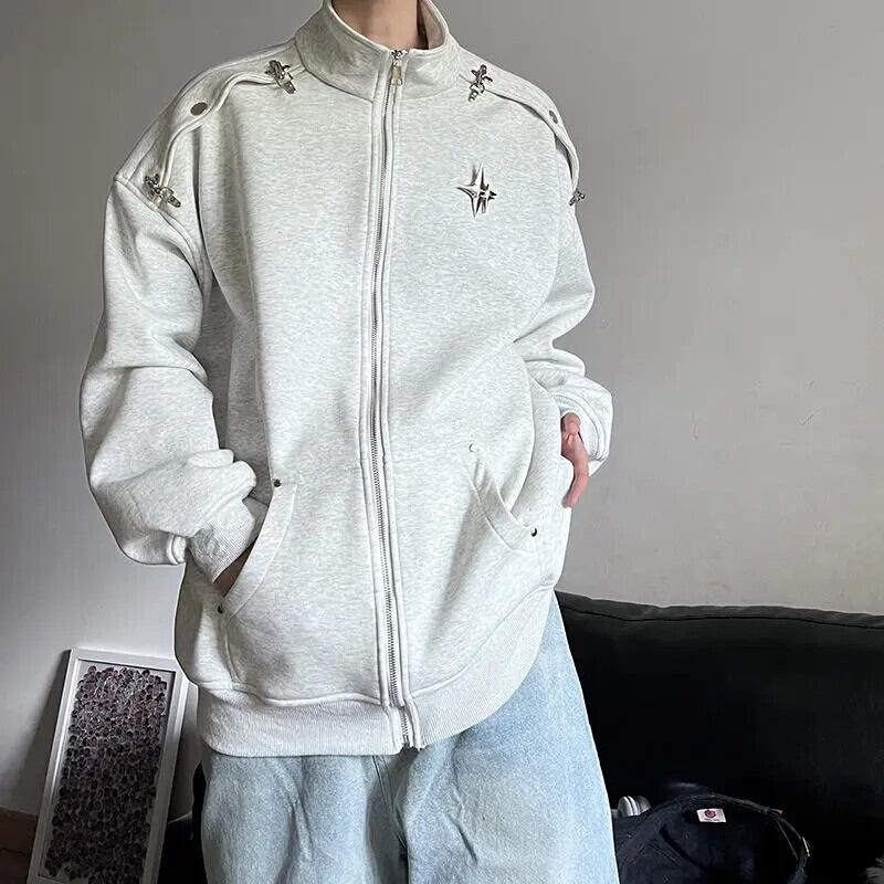 アメリカルーズフィットトレンディクールジッパー付きスウェットシャツメンズ秋スタンドカラーベースボールジャケット レッド オータム 秋物