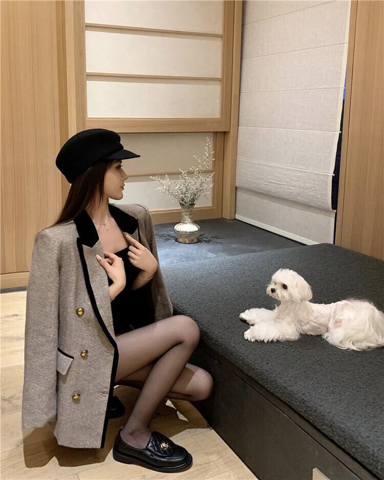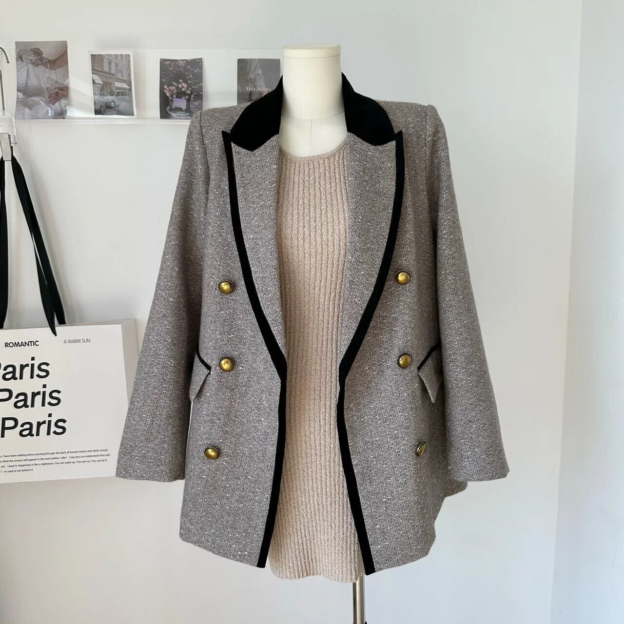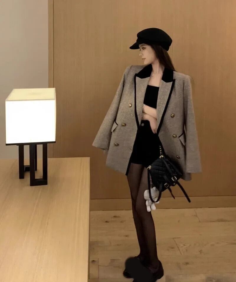 メイラードプレッピースタイルウールスーツコート秋ターンダウン襟多用途ルーズジャケット オータム 秋物