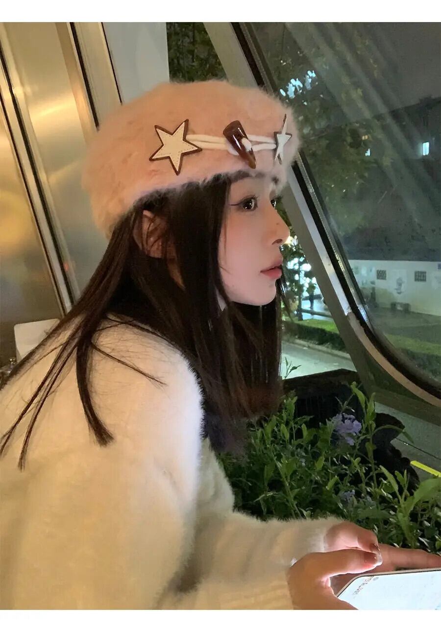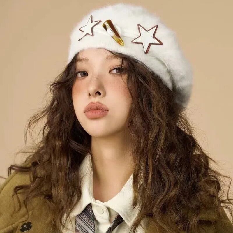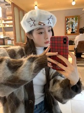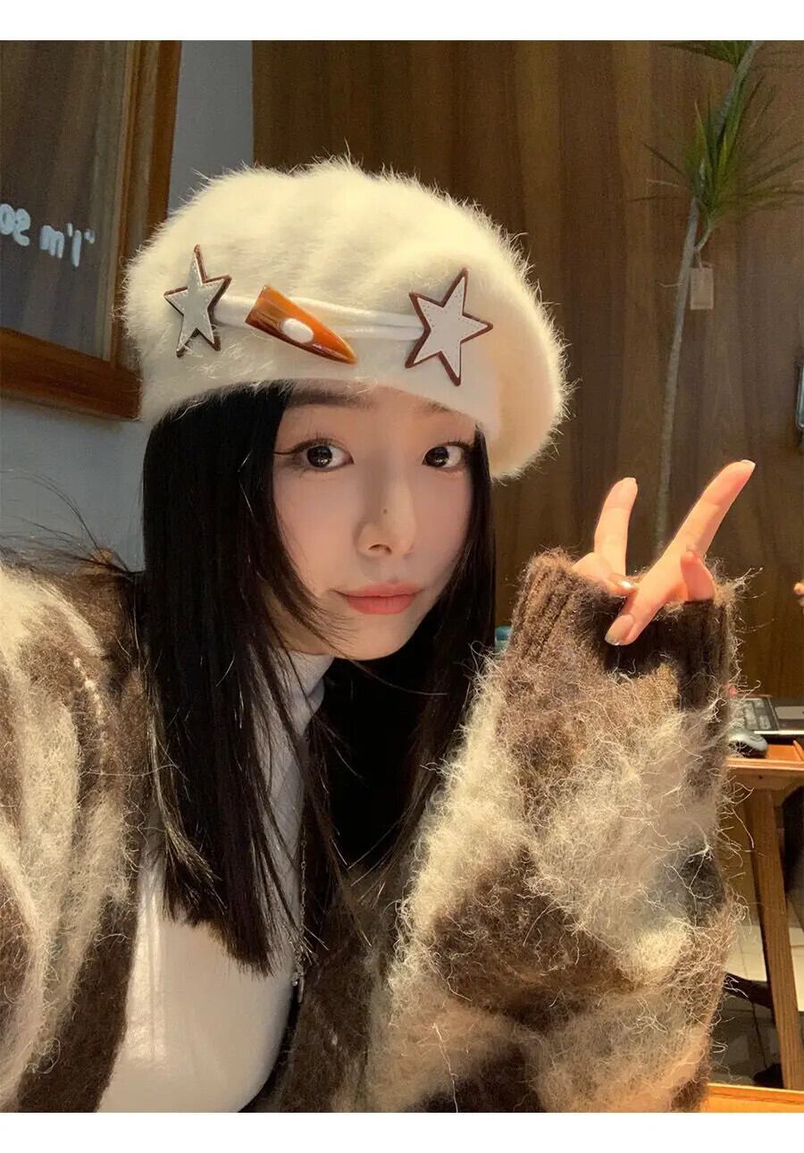甘いホットガールウサギ髪ベレー帽秋と冬スタイル白いベレー帽トレンディアクセサリー ホワイト 大人ガーリー スウィート キュート カジュアル オータム 秋物 ウィンター 冬物 ベレット ヘアアクセサリー