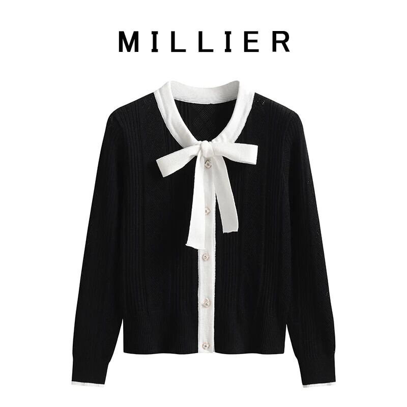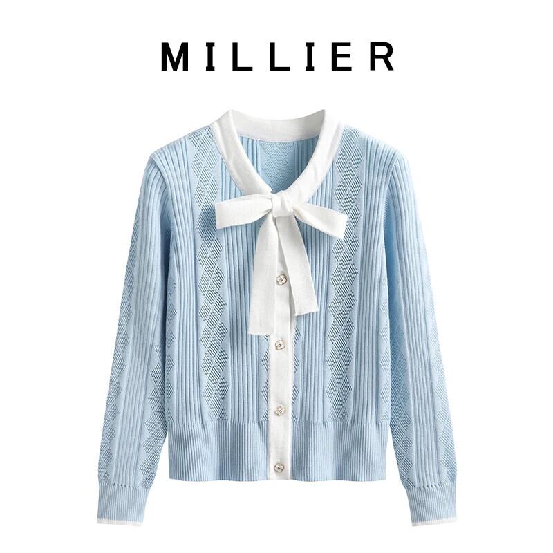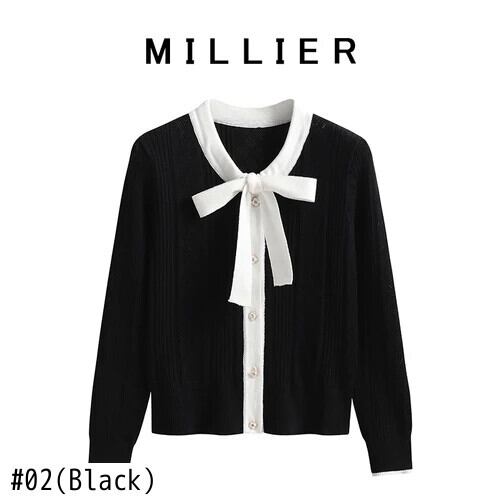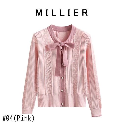フレンチスイートガールネクタイニットカーディガン春と秋ボウタイレースアップショートセーター リボン 大人ガーリー スウィート キュート カジュアル スプリング 春物 オータム 秋物