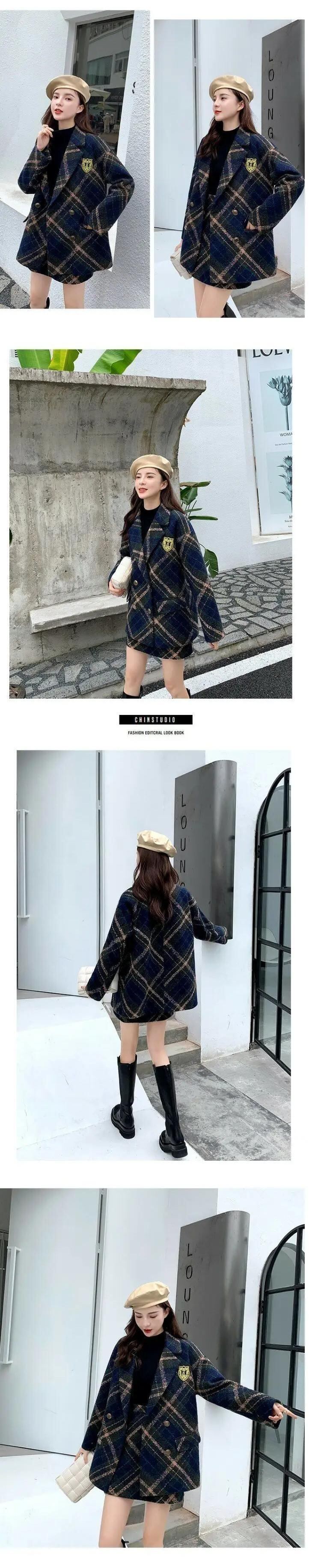スウィートガールスーツ レディース 秋冬 チェック柄 長袖 ツイード コート ウエスト ミニスカート 2点セット ロング 大人ガーリー キュート カジュアル オータム 秋物 ウィンター 冬物