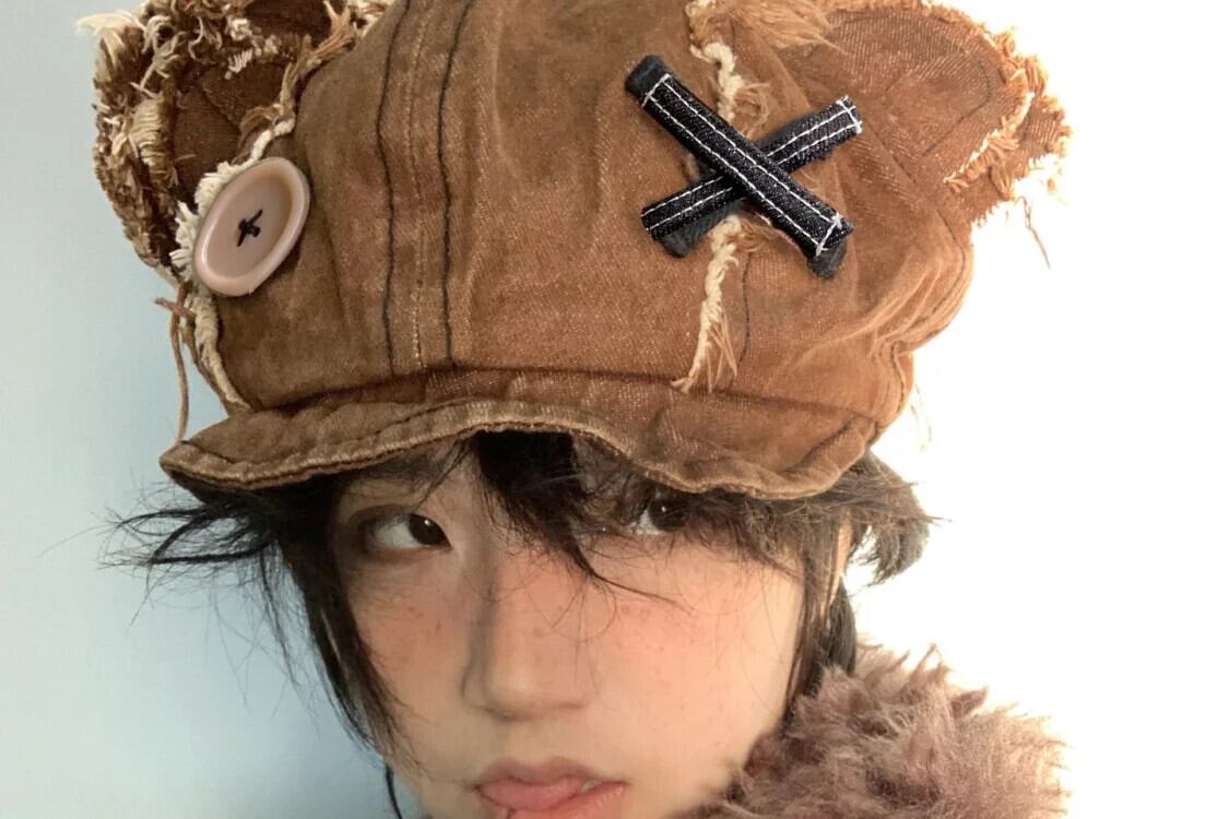 ホットガール人形帽子秋 Y2K ボタン要素リトルベア耳かわいい sboy 帽子トレンディアクセサリー 大人ガーリー スウィート キュート カジュアル オータム 秋物