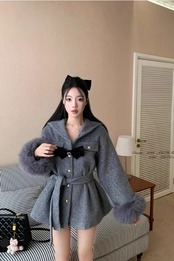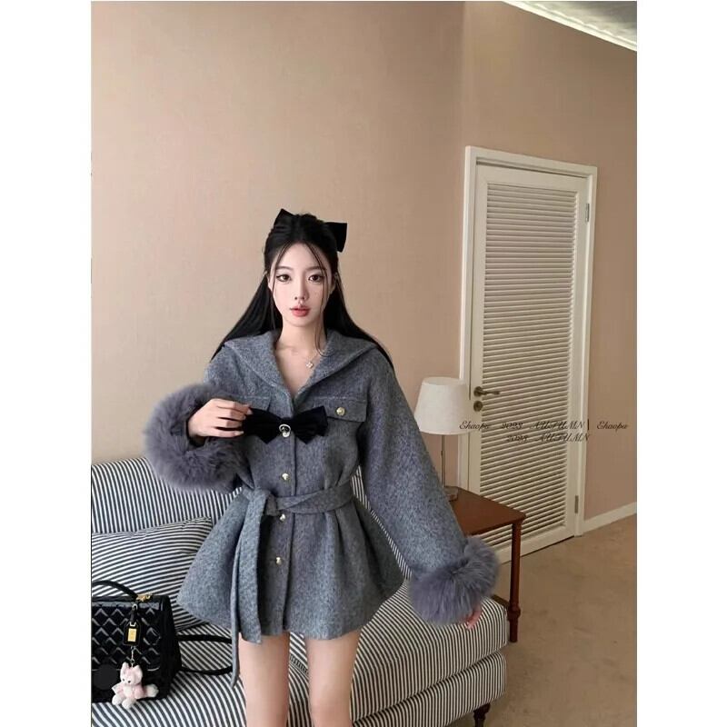 スタイルスウィートガールルーズウールケープコート秋と冬取り外し可能毛皮襟コート 大人ガーリー キュート カジュアル オータム 秋物 ウィンター 冬物