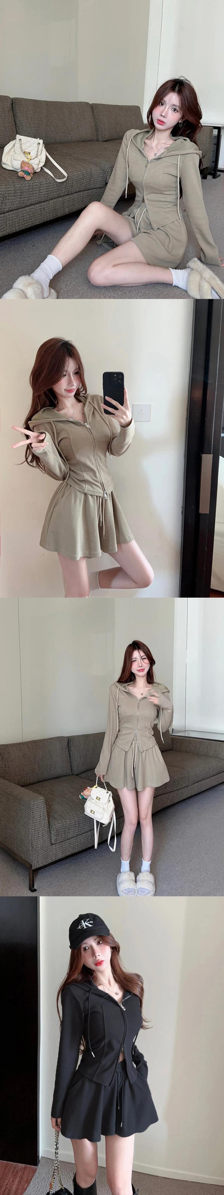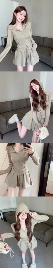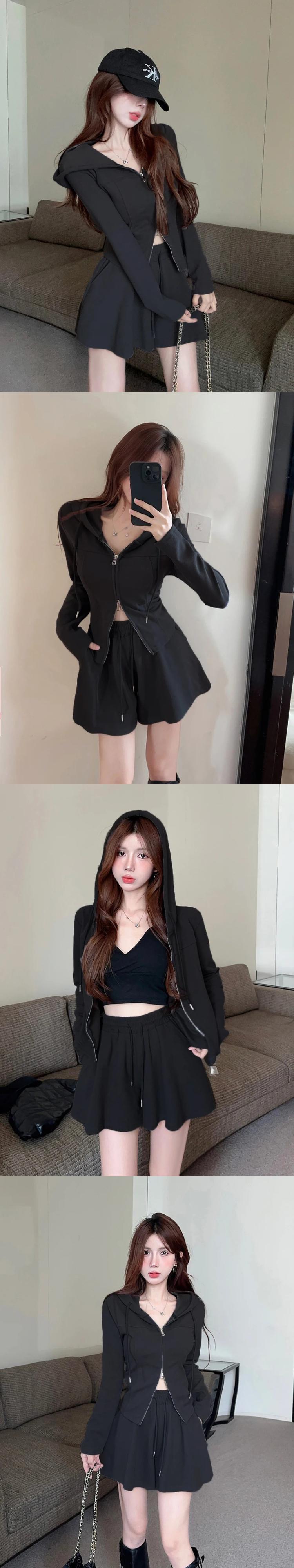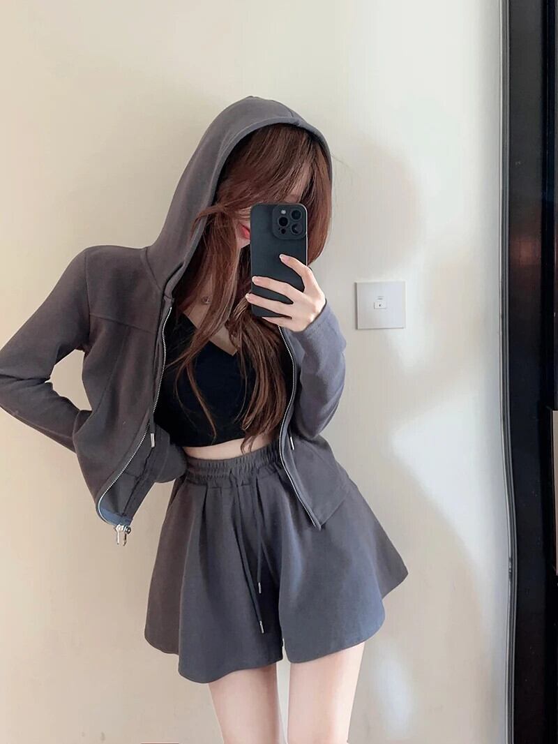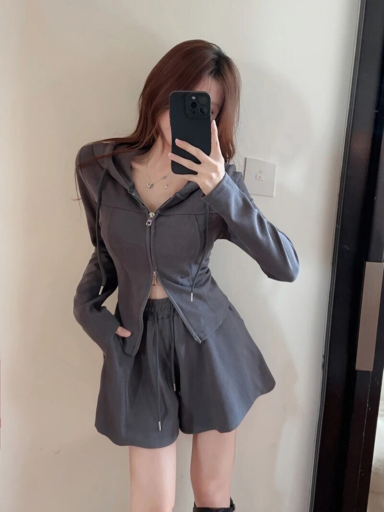 ホットガールスーツジッパーフード付きスウェットシャツ弾性ウエストルーズショーツツーピースセット エラスティック 伸縮 ブルマー
