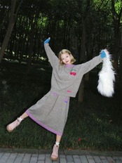 甘いホットガールスーツ秋刺繍チェリーセーター A ラインロングスカート 2 点セット レッド 大人ガーリー スウィート キュート カジュアル オータム 秋物 Aライン
