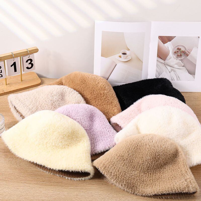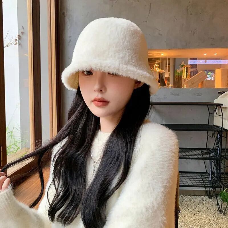 スタイルラビットホワイトバケットハット秋/冬暖かさと豪華バケットハットトレンディアクセサリー 帽子 オータム 秋物 ウィンター 冬物