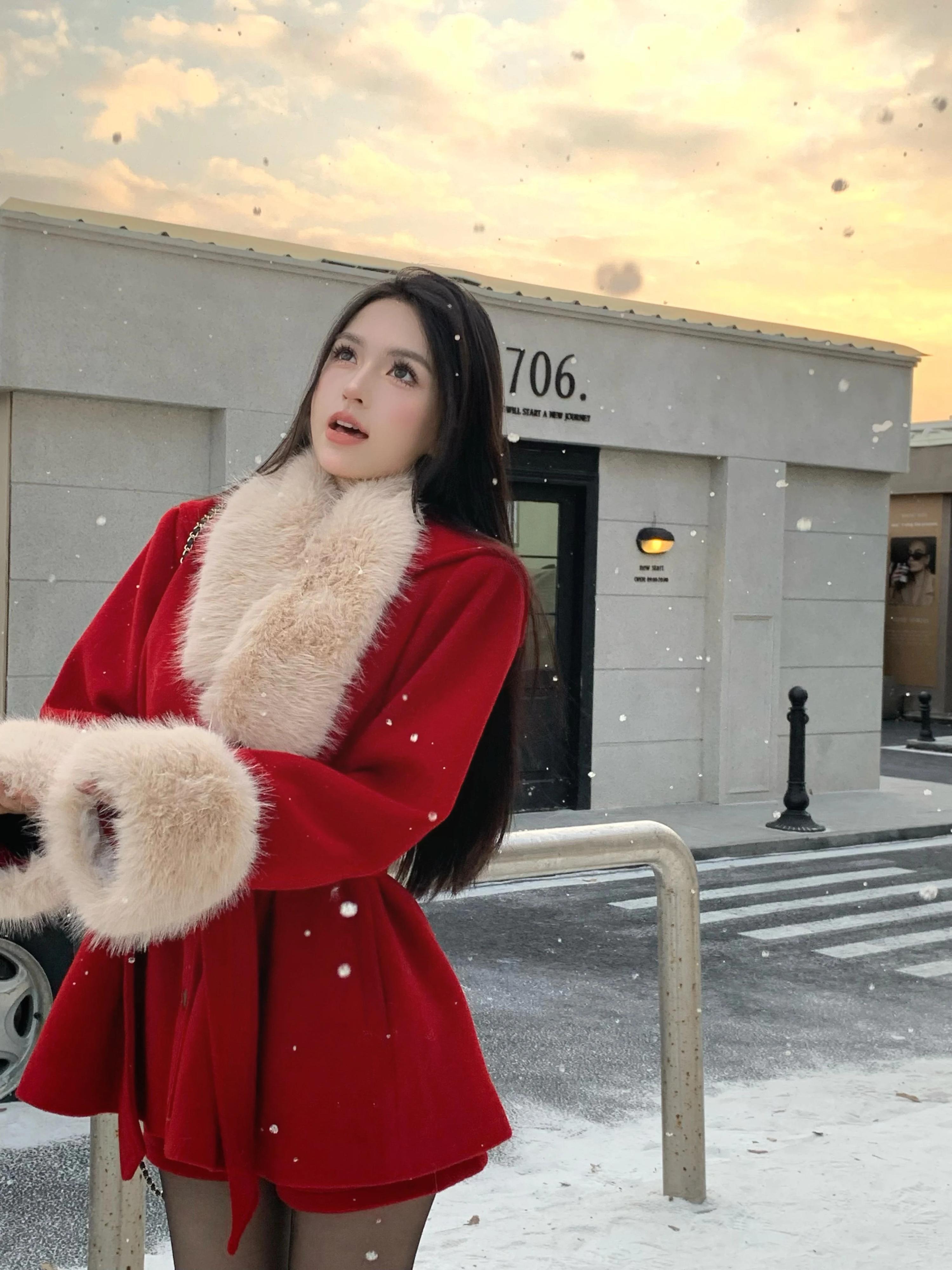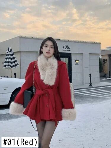 スタイルスイートガールウールジャケット秋と冬マントペアミッドレングスチョッキ レッド 大人ガーリー スウィート キュート カジュアル オータム 秋物 ウィンター 冬物