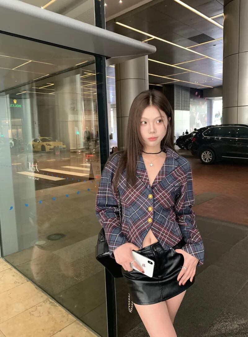 スパイシーガールチェック柄スーツジャケット秋/冬セクシーレトロスリムフィット長袖ショートテーラードコート ロング レッド オータム 秋物 ウィンター 冬物