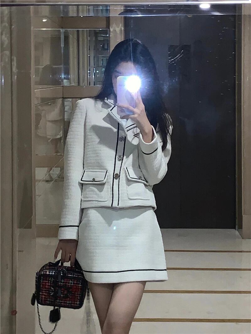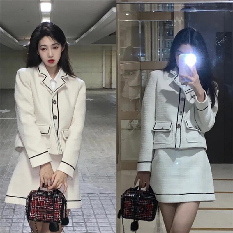 スイートホットガールスーツ秋/冬長袖ショートテーラードコートウエストミニスカートツーピースセット ロング レッド 大人ガーリー スウィート キュート カジュアル オータム 秋物 ウィンター 冬物