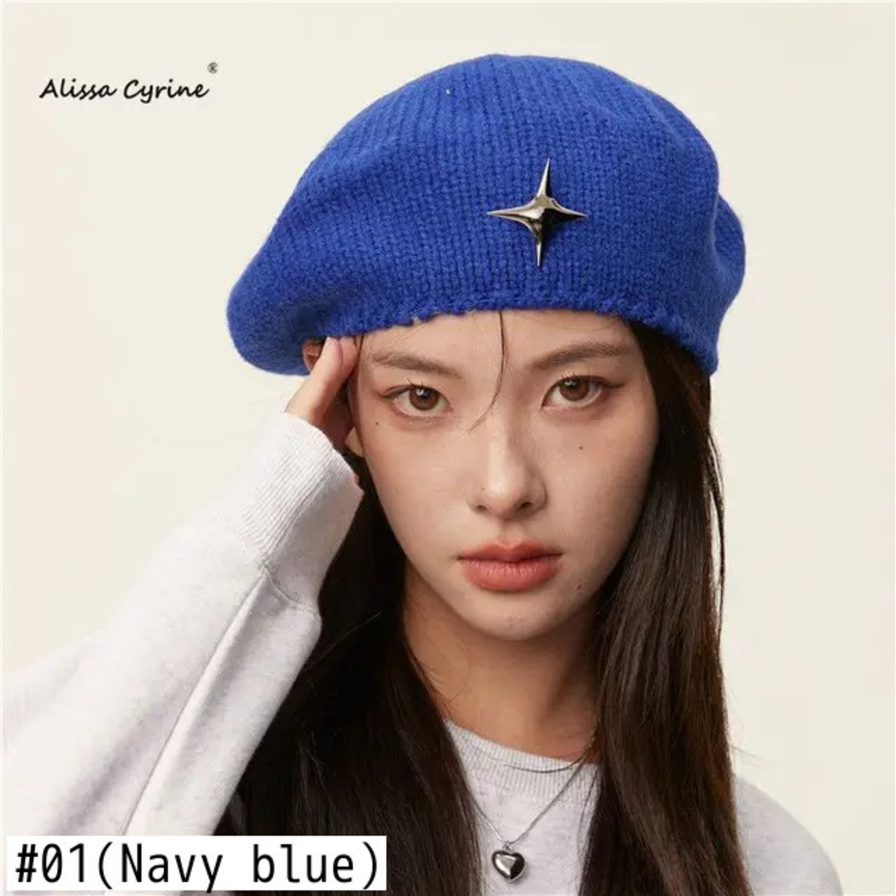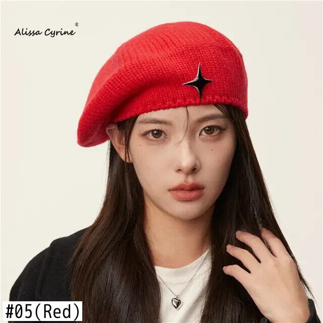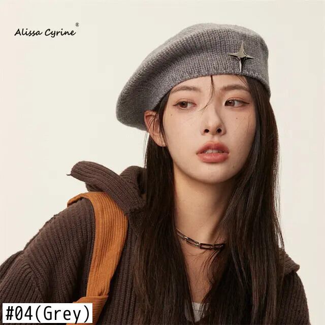 甘いホットガールニットベレー帽秋と冬金属装飾 K-pop ニット帽子トレンディアクセサリー 大人ガーリー スウィート キュート カジュアル オータム 秋物 ウィンター 冬物 ベレット ヘアアクセサリー