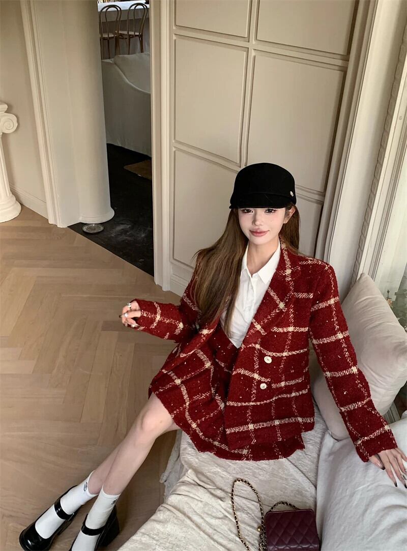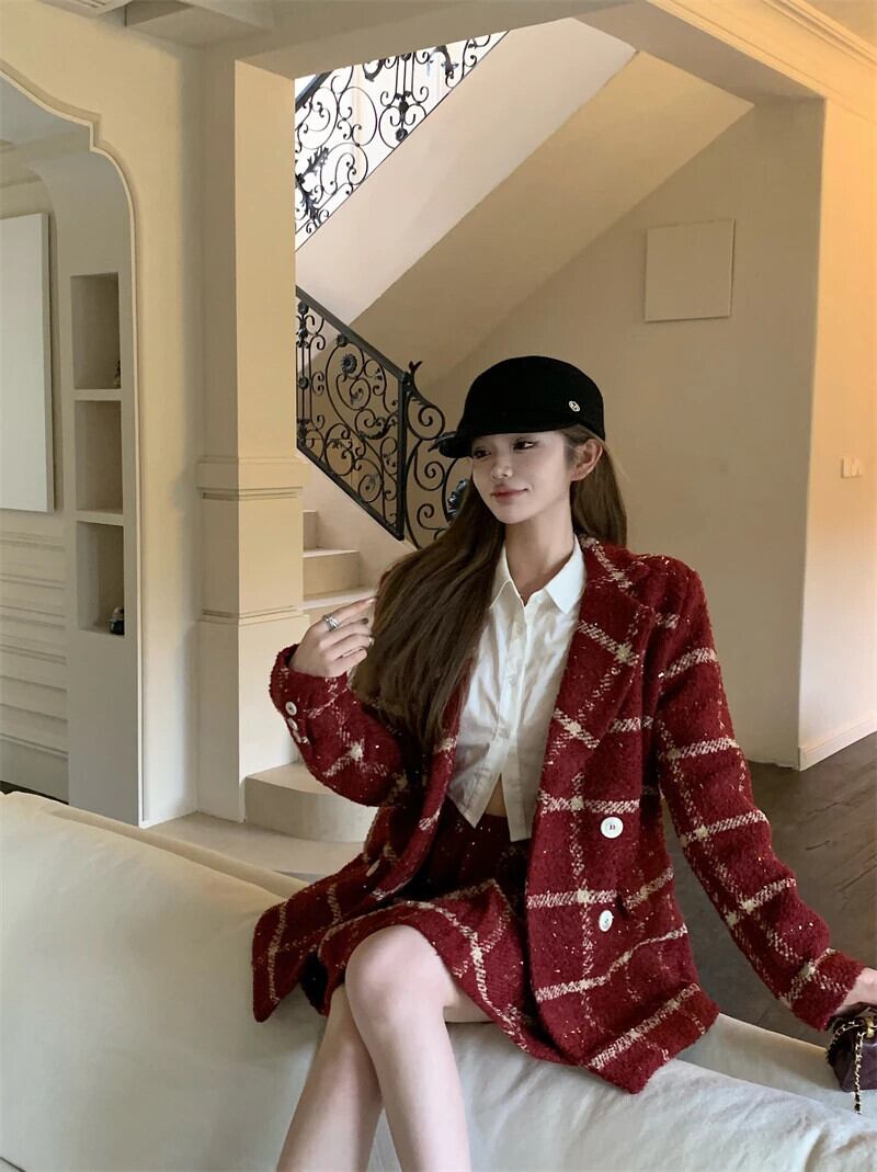 スイートホットガールスーツ レディース 冬 クリスマス レッド テーラードコート ウエスト Aライン ミニスカート 2点セット 大人ガーリー スウィート キュート カジュアル ウィンター 冬物