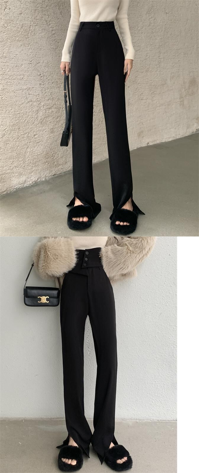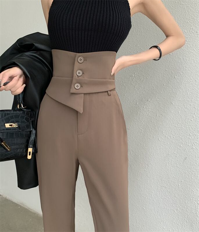 スタイルウエストスーツパンツ秋ルーズフィットマイクロフレアストレートレッグパンツ レッド オータム 秋物