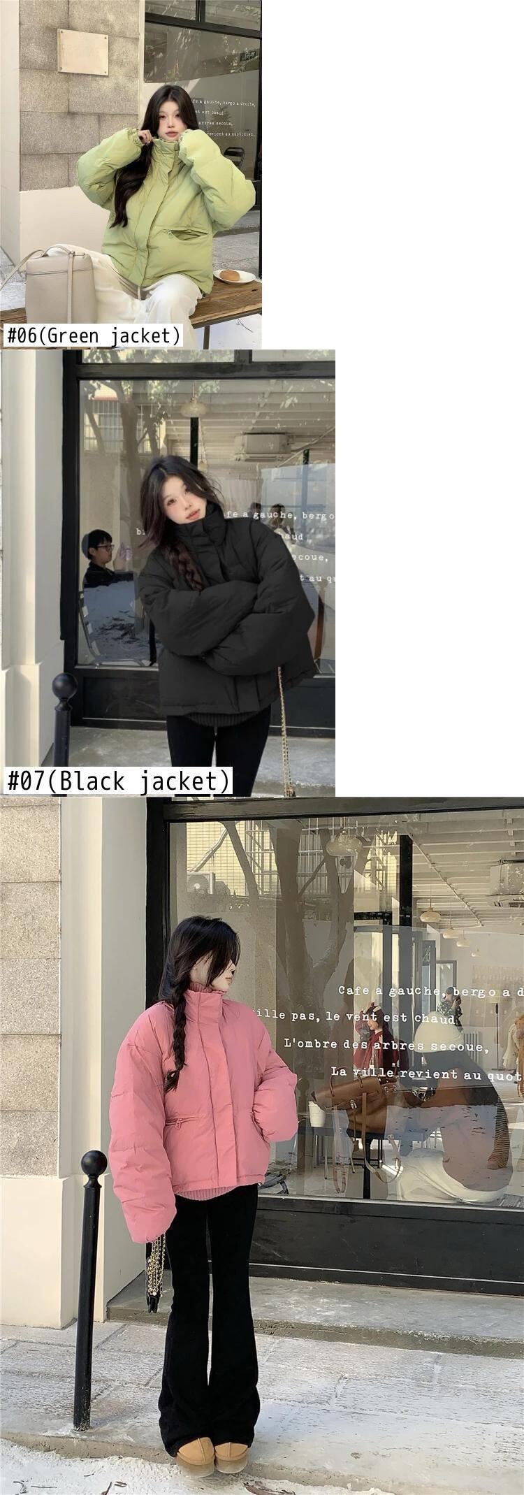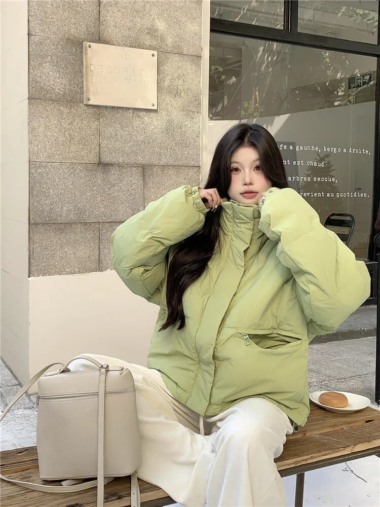 甘いホットガール無地シックコットンコート冬ルーズ長袖スタンドカラー暖かいパンジャケット ロング 大人ガーリー スウィート キュート カジュアル ウィンター 冬物 ソリッドカラー