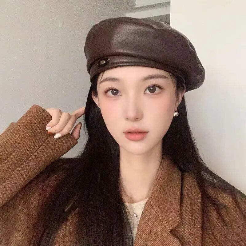 ese スタイル甘いホットガール PU レザーベレー帽秋と冬シンプルベレー帽トレンディアクセサリー 大人ガーリー スウィート キュート カジュアル オータム 秋物 ウィンター 冬物 ベレット ヘアアクセサリー