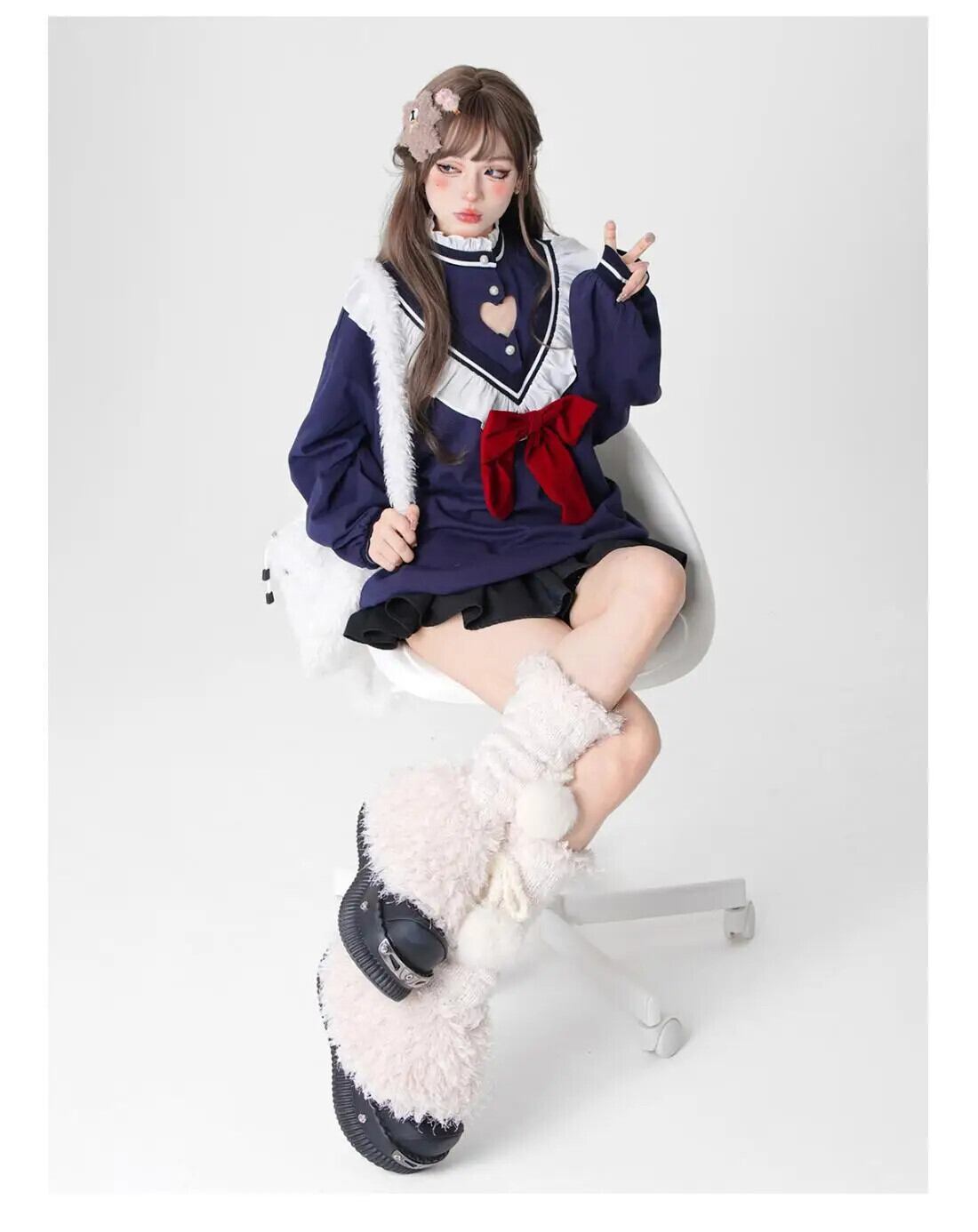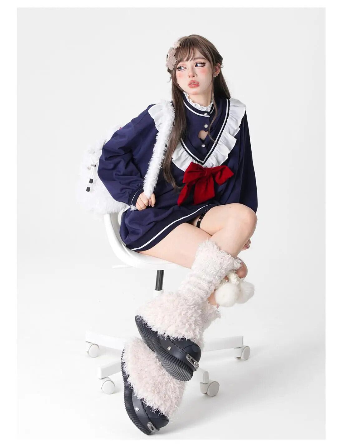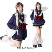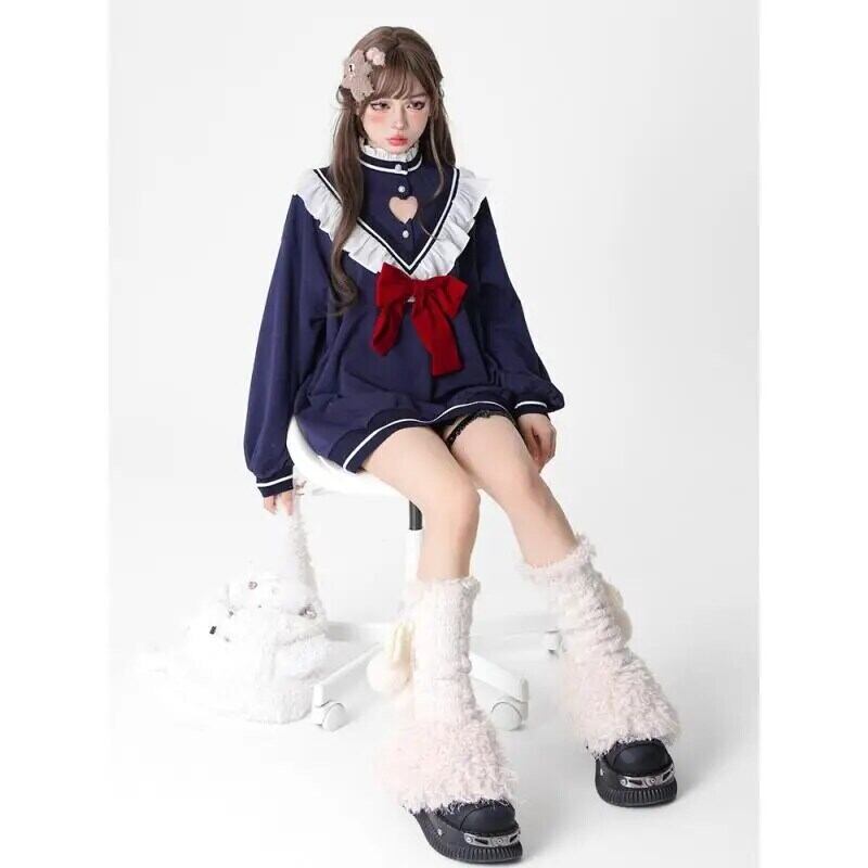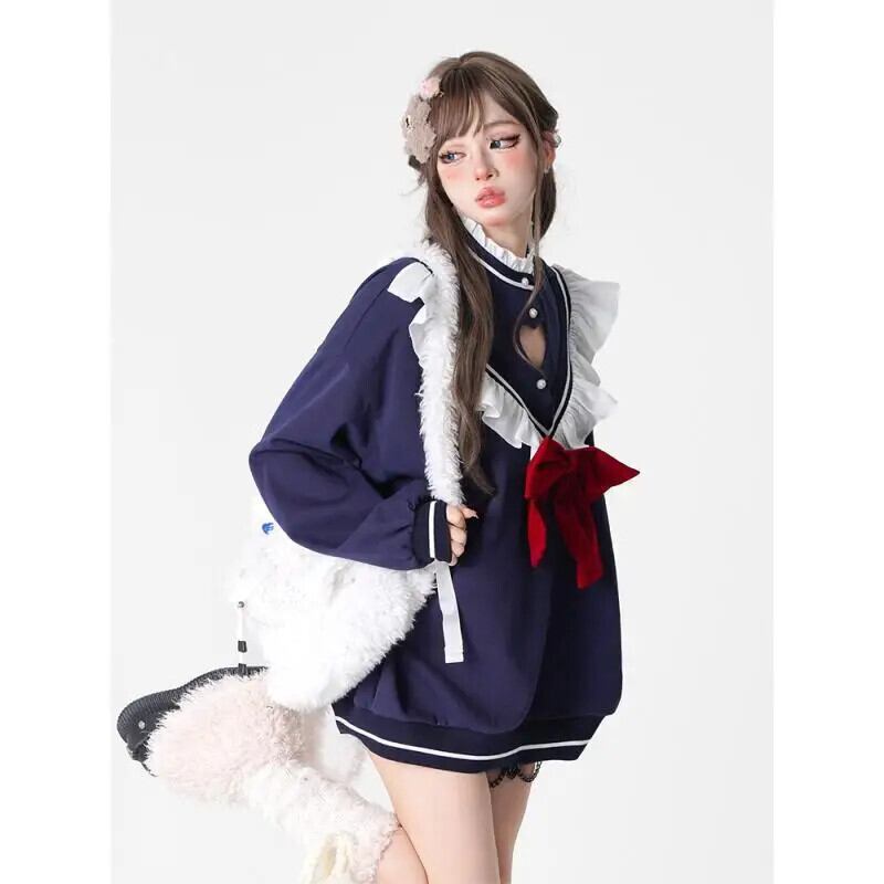 ese Sweet Girl プレッピースタイル ブルー スウェットシャツ レディース 秋冬 長袖 スタンドカラー かわいい ゆったり プルオーバー ロング 大人ガーリー スウィート キュート カジュアル オータム 秋物 ウィンター 冬物