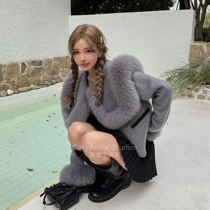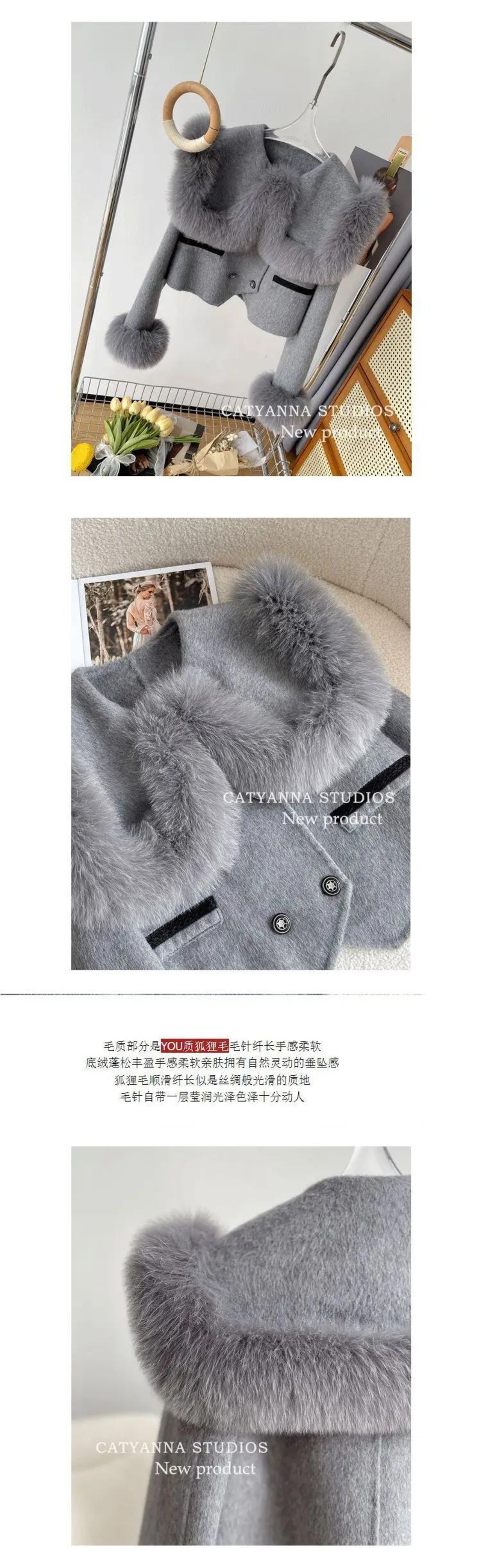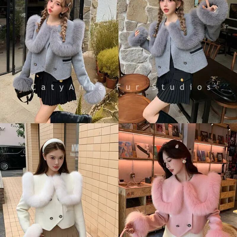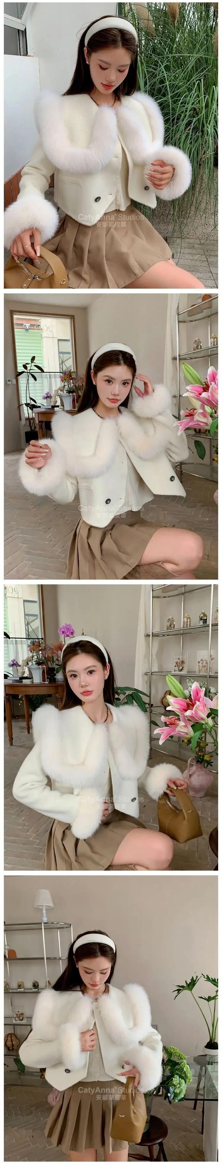 甘いホットガールフェイクファーウールコート冬ショートウエストセーラー襟両面ウールコート 大人ガーリー スウィート キュート カジュアル ウィンター 冬物