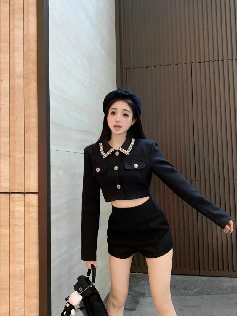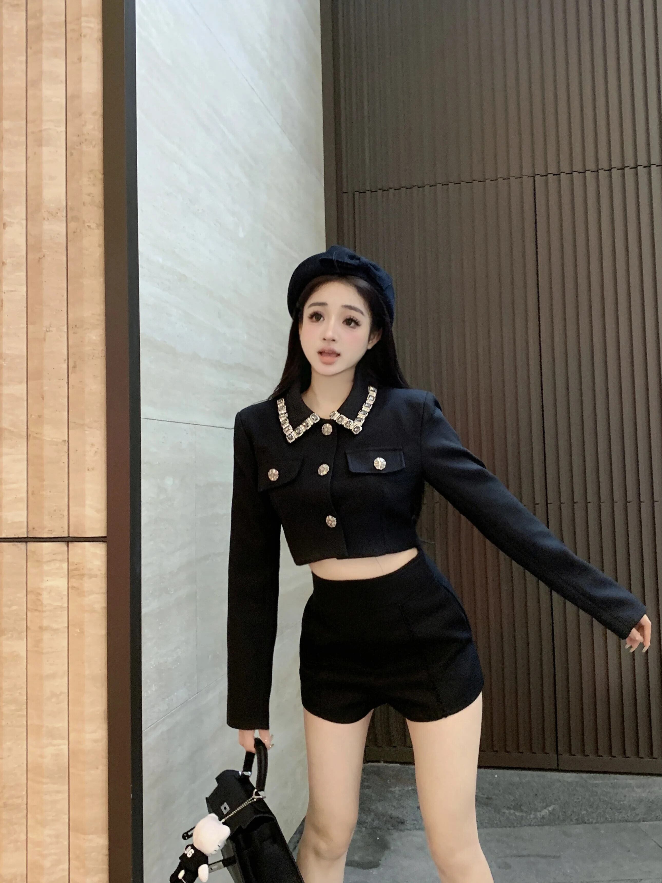 甘いホットガールスーツ秋ダイヤモンド長袖黒テーラードコートウエストショーツ 2 点セット ロング レッド ブラック 大人ガーリー スウィート キュート カジュアル オータム 秋物 ブルマー