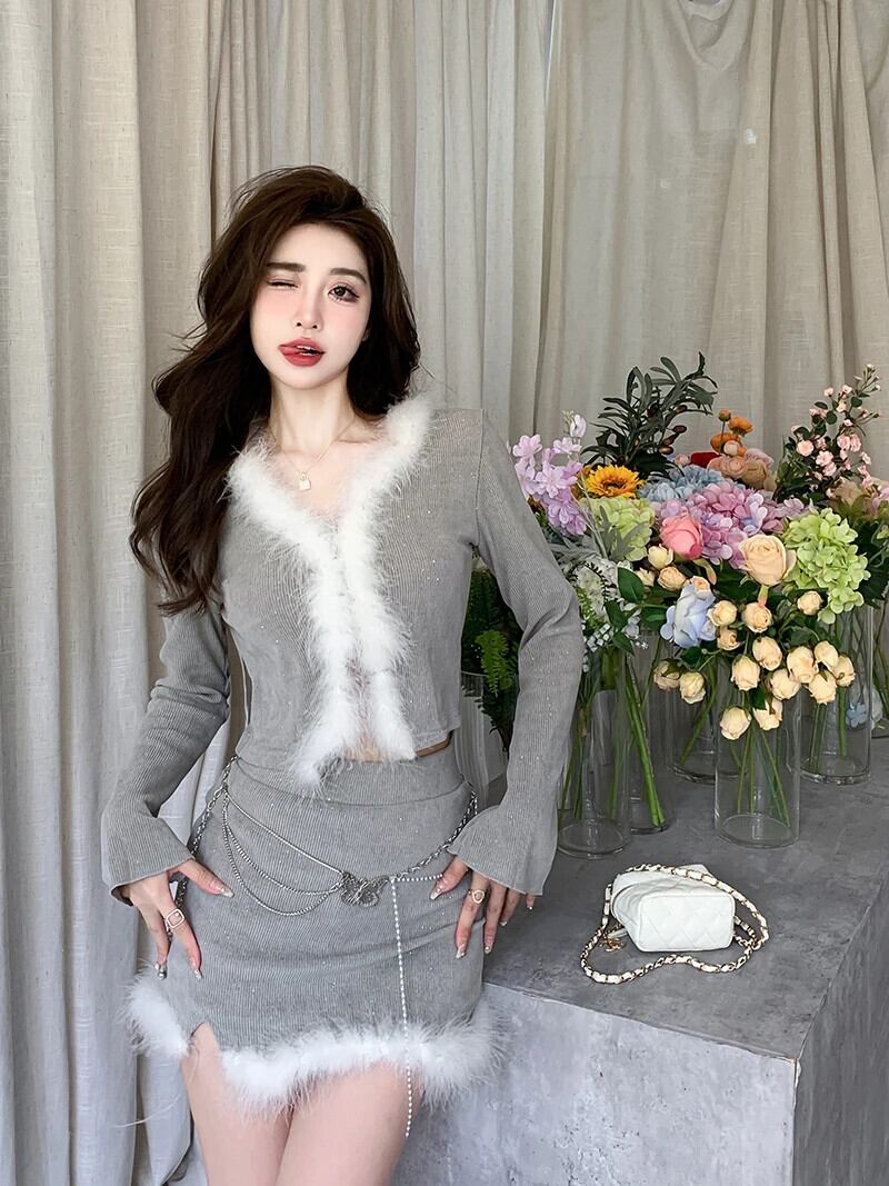 ホットガールズスーツ レディース 秋冬 長袖 スリムフィット ショートファートップ ウエスト ミニスカート 2点セット ロング オータム 秋物 ウィンター 冬物